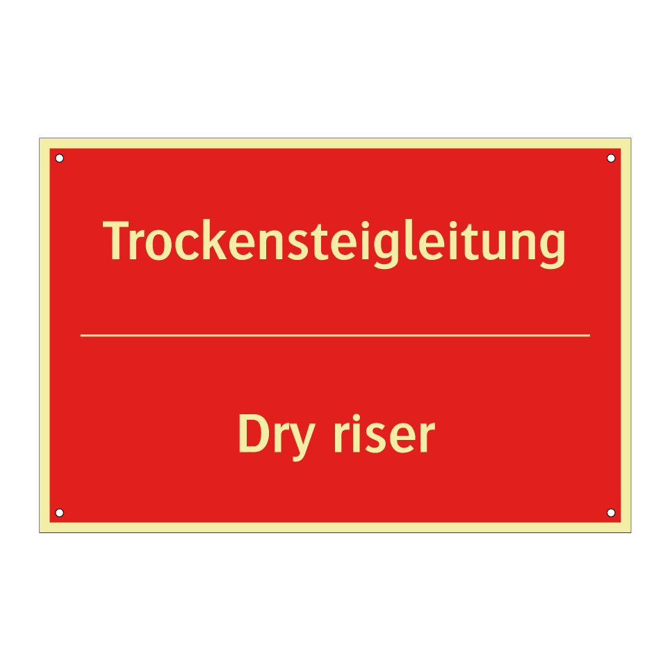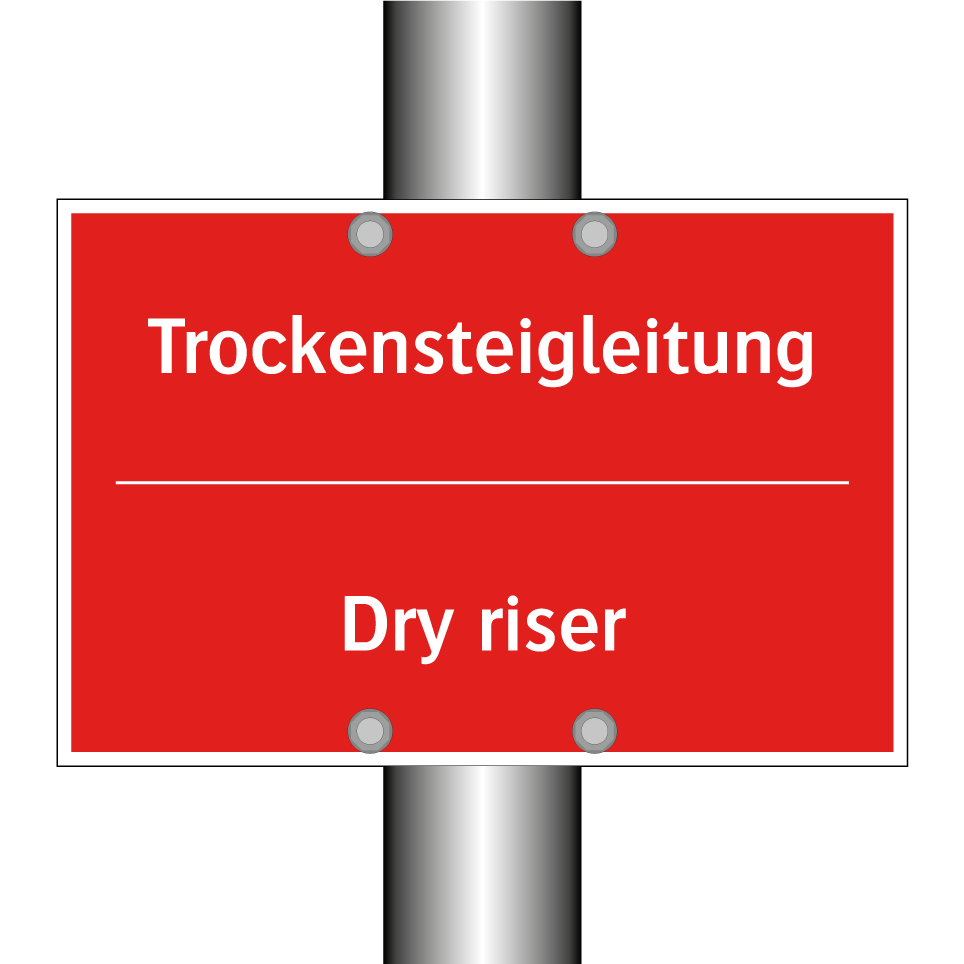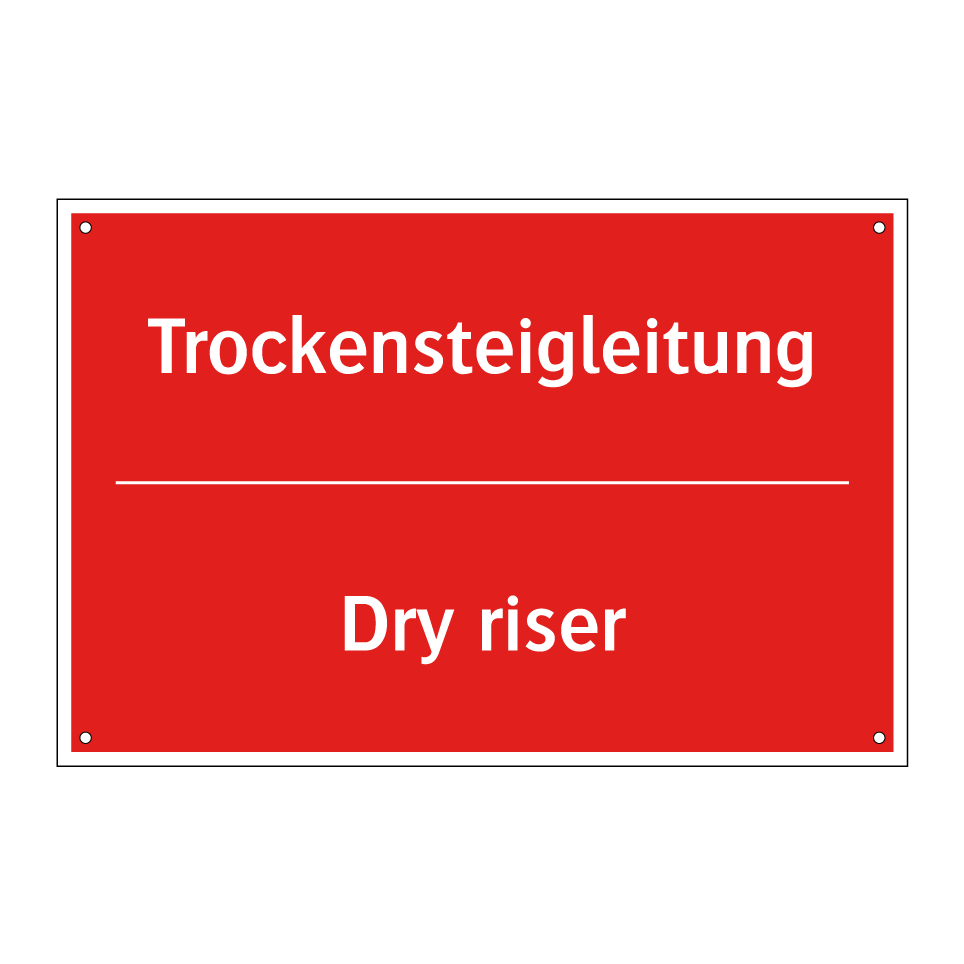 Zweisprachiges Brandschutzschild mit deutschem Text Trockensteigleitung und englischem Text Dry riser