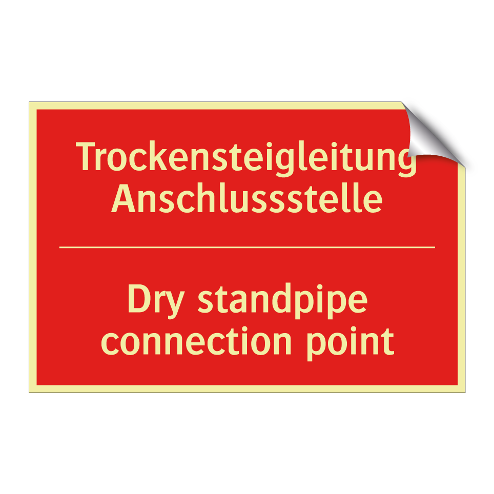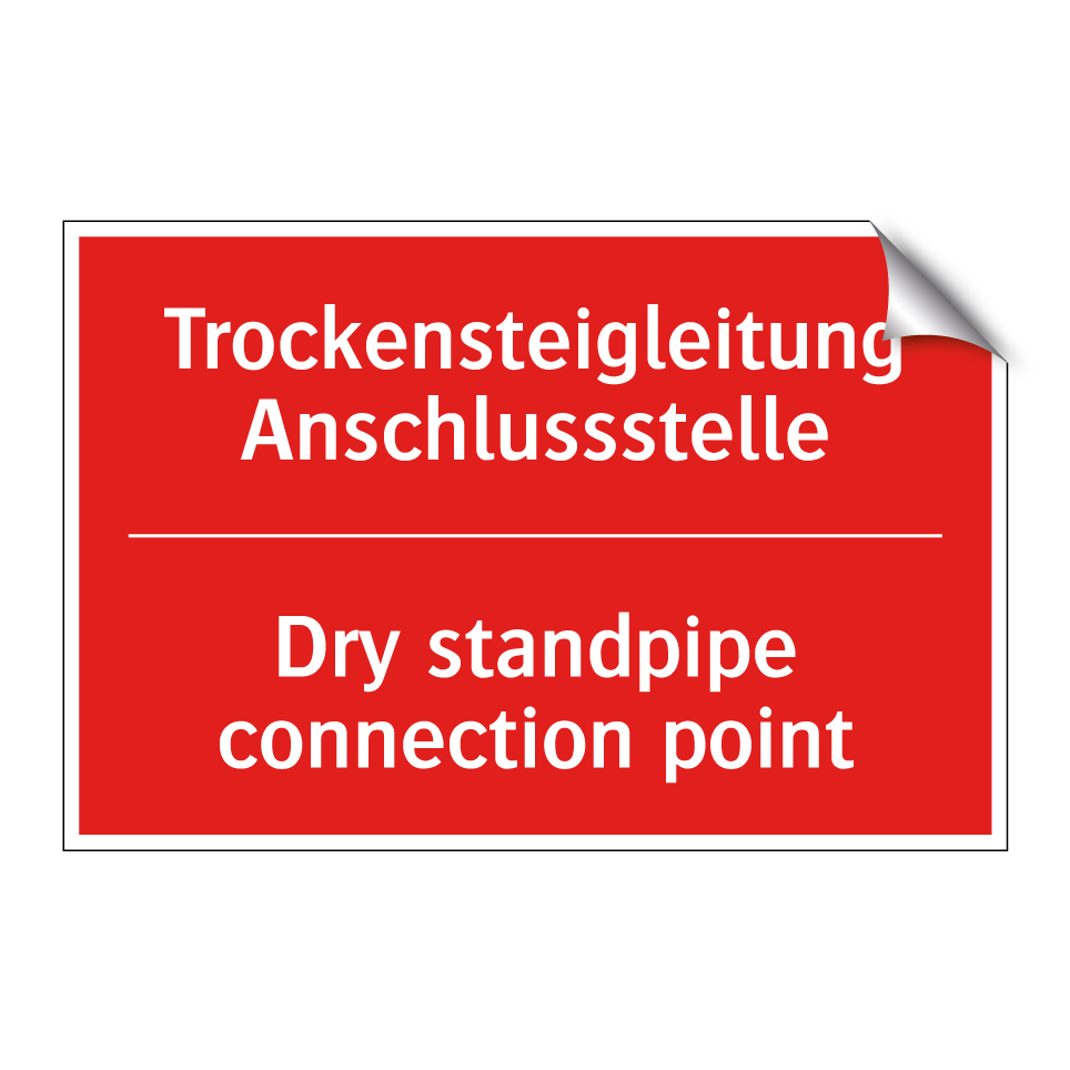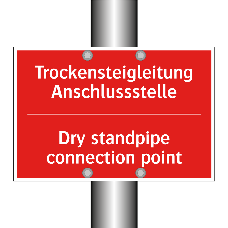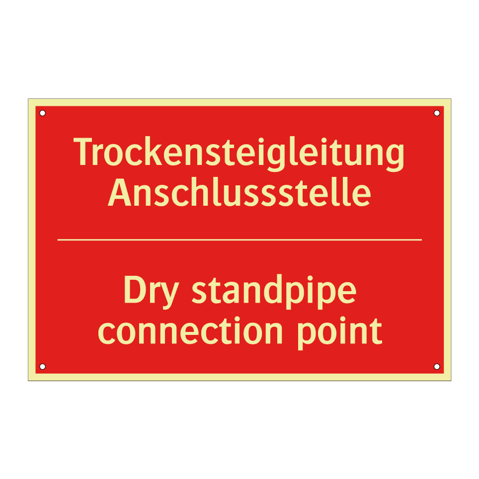 Zweisprachiges Brandschutzschild mit deutschem Text Trockensteigleitung Anschlussstelle und englischem Text Dry standpipe connection point