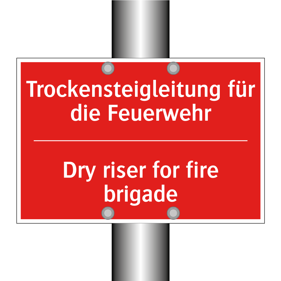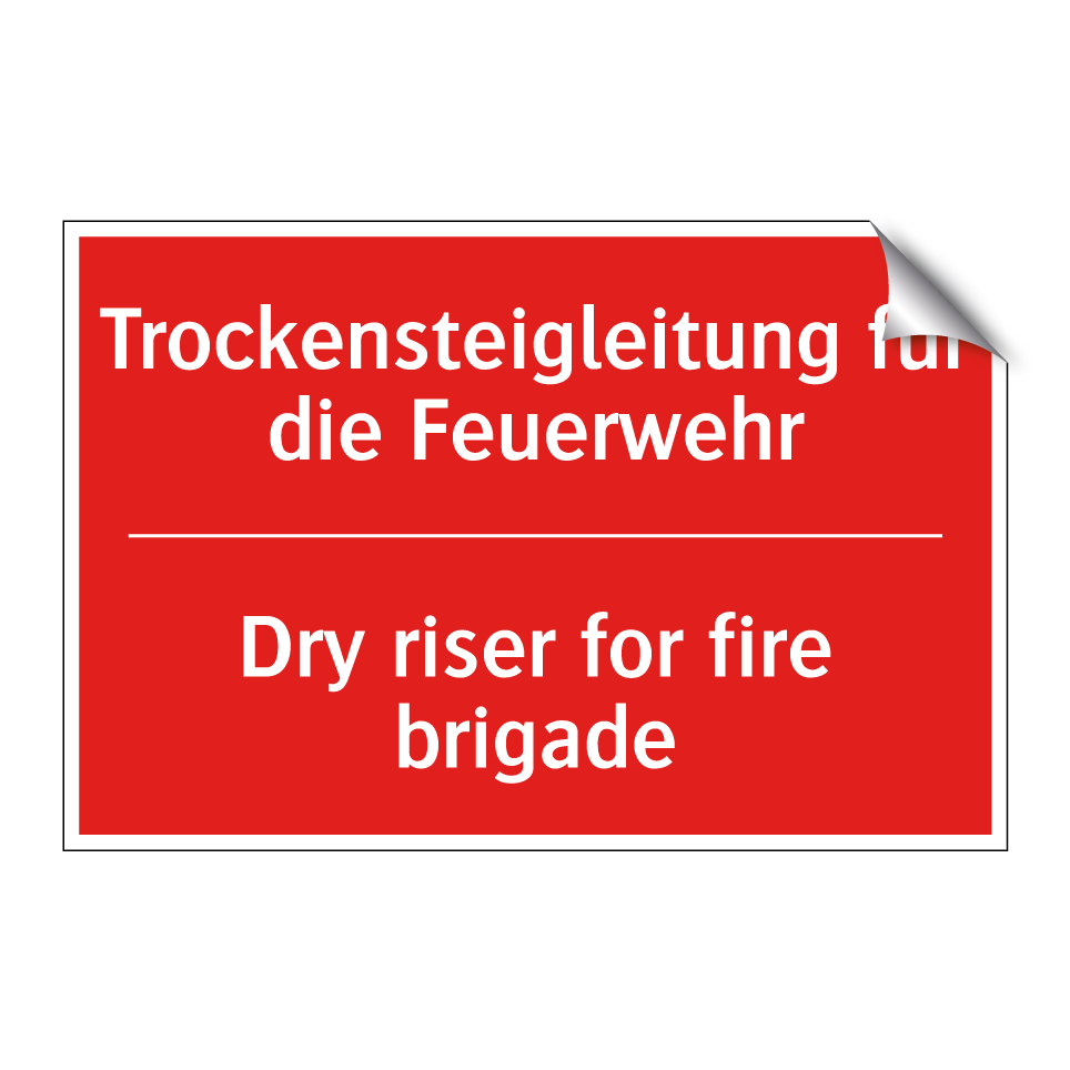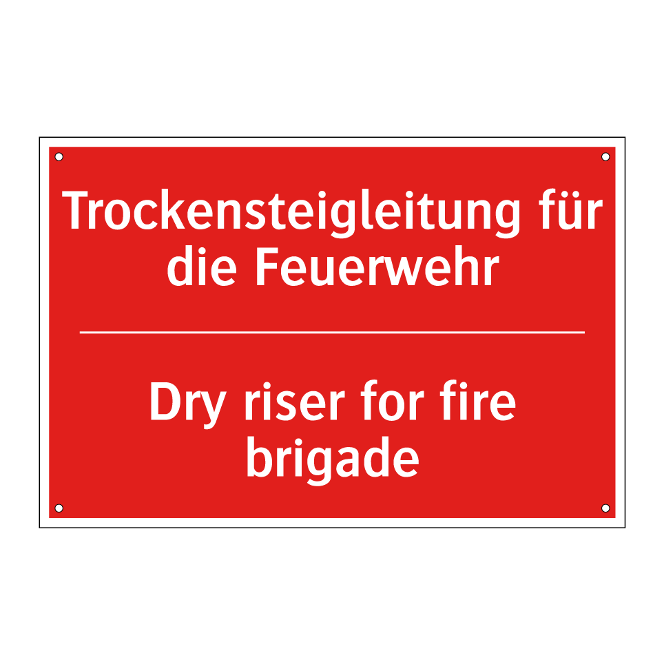 Zweisprachiges Brandschutzschild mit deutschem Text Trockensteigleitung für die Feuerwehr und englischem Text Dry riser for fire brigade