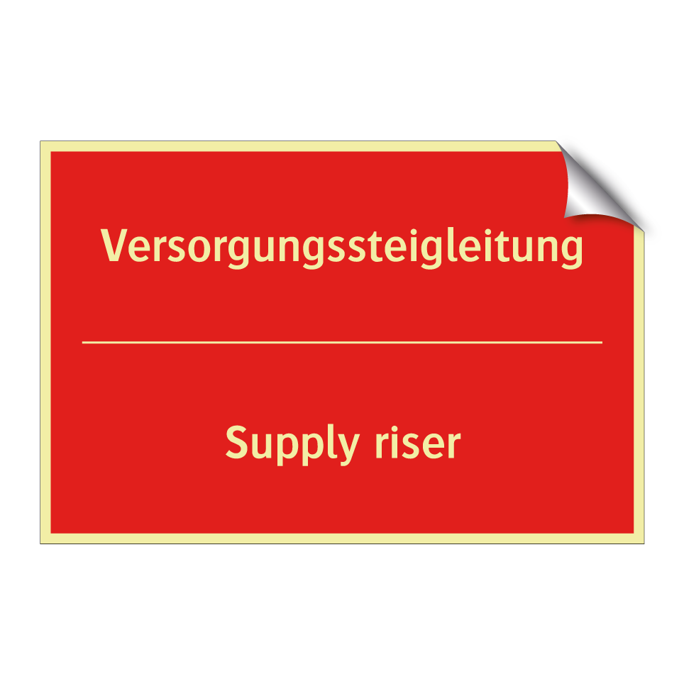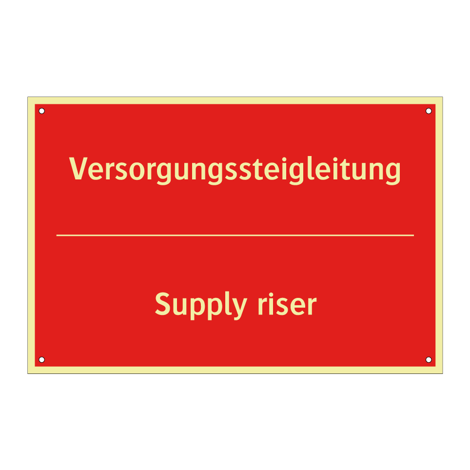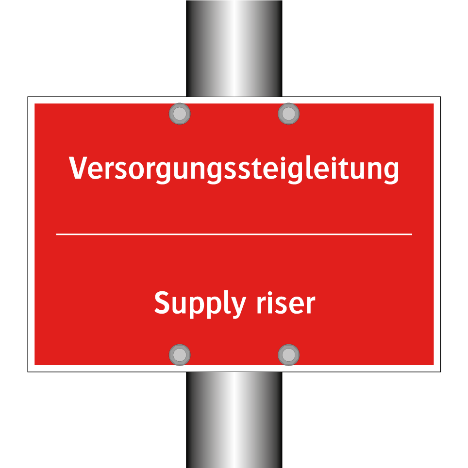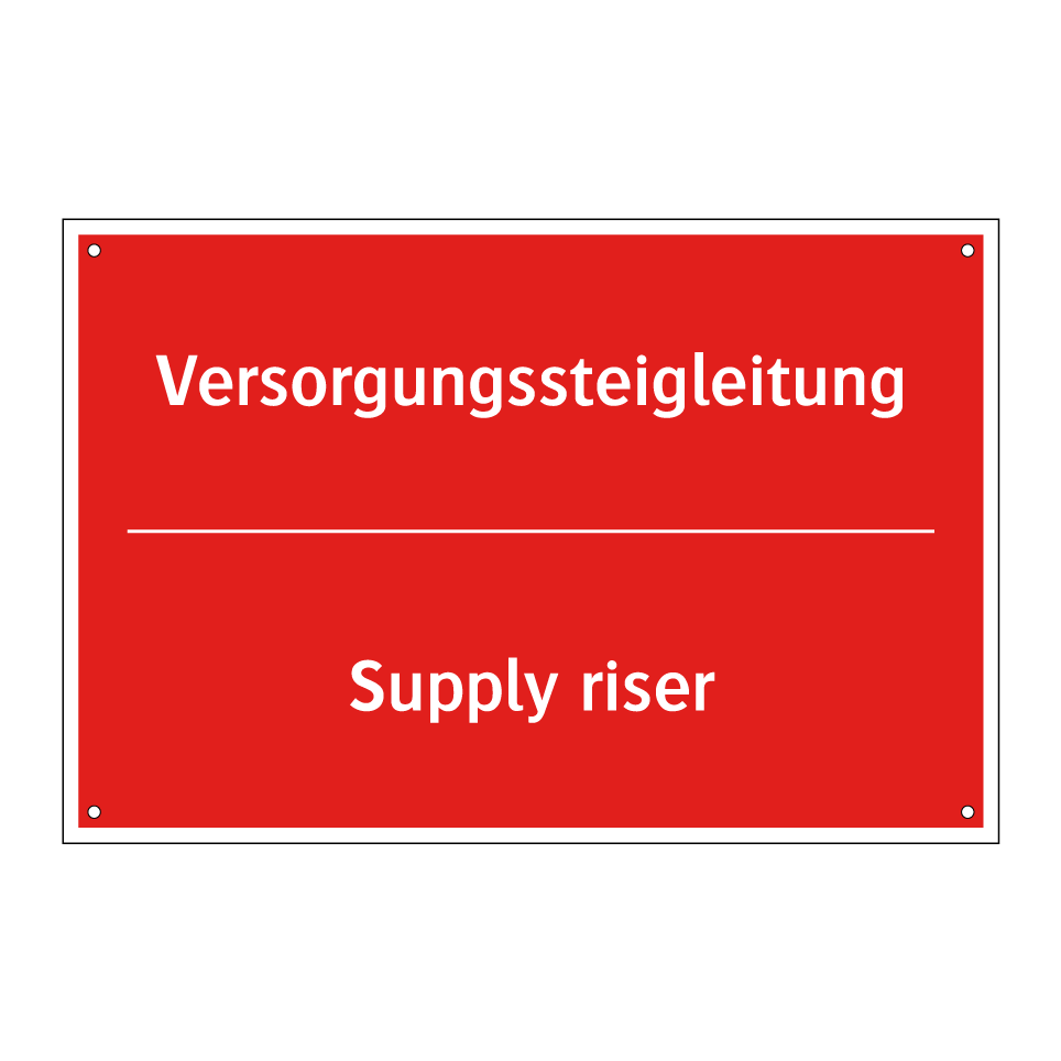 Zweisprachiges Brandschutzschild mit deutschem Text Versorgungssteigleitung und englischem Text Supply riser