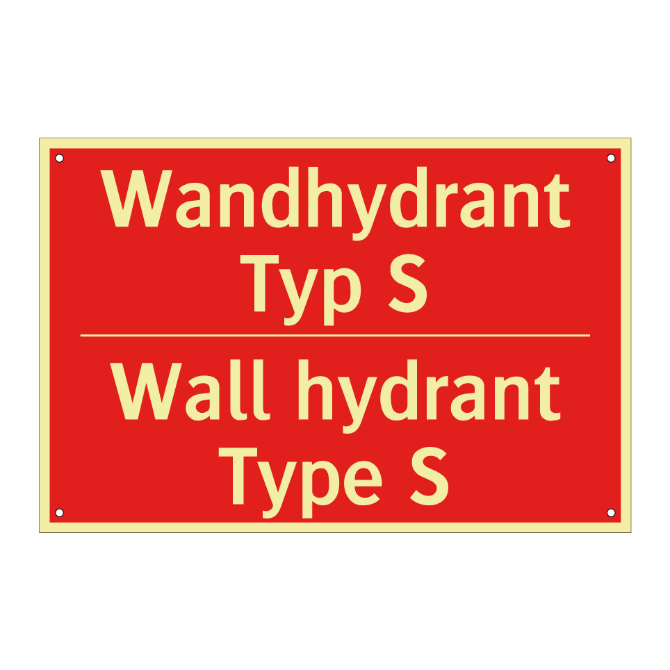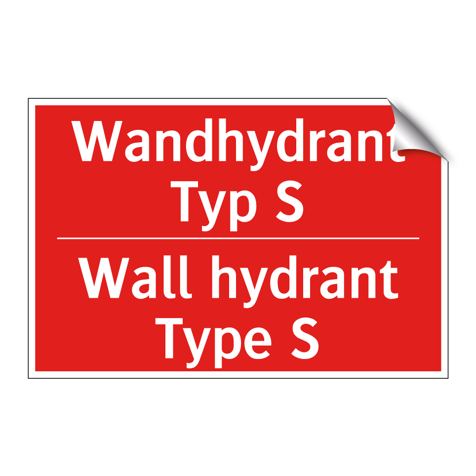 Zweisprachiges Brandschutzschild mit deutschem Text Wandhydrant Typ S und englischem Text Wall hydrant Type S