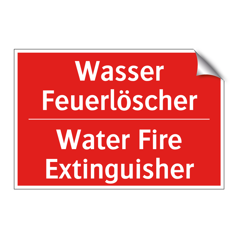 Zweisprachiges Brandschutzschild mit deutschem Text Wasser Feuerlöscher und englischem Text Water Fire Extinguisher