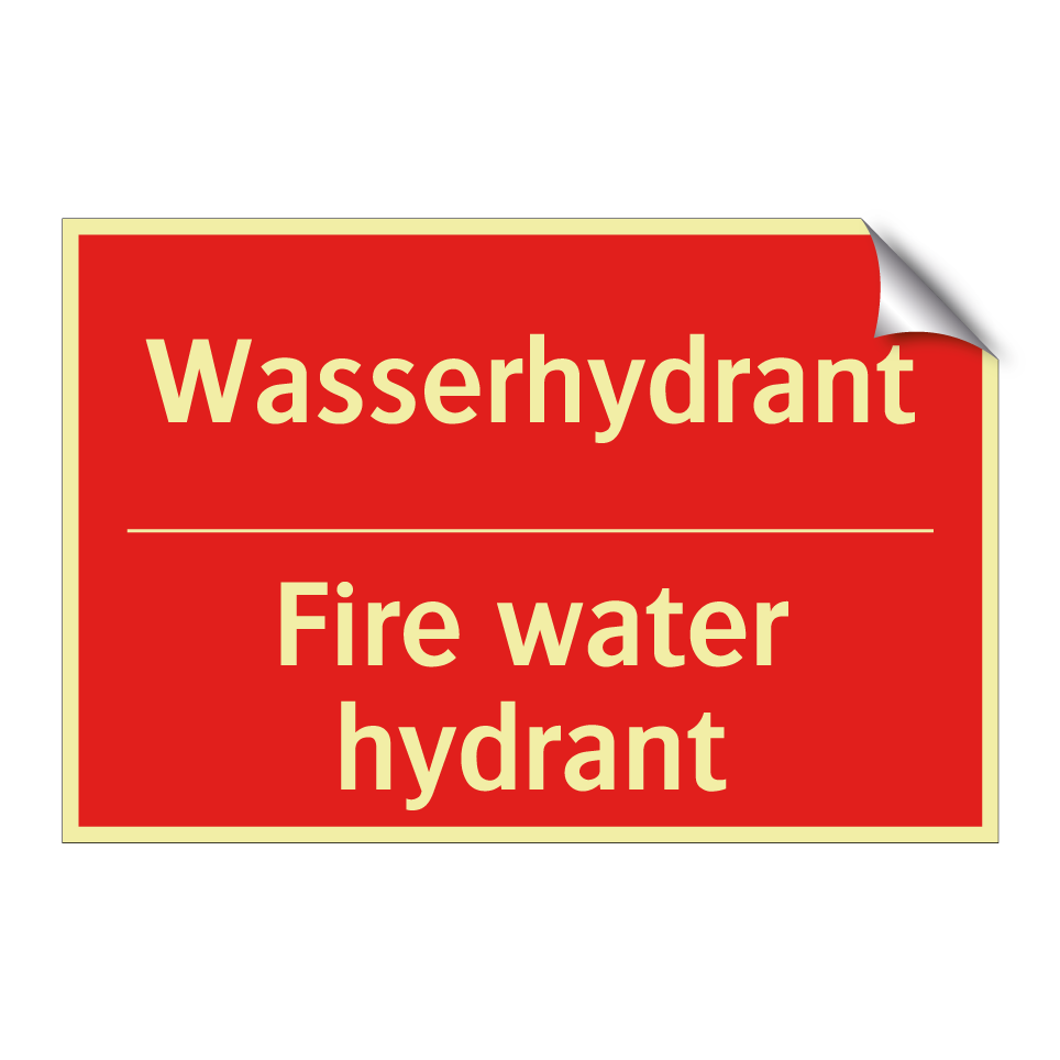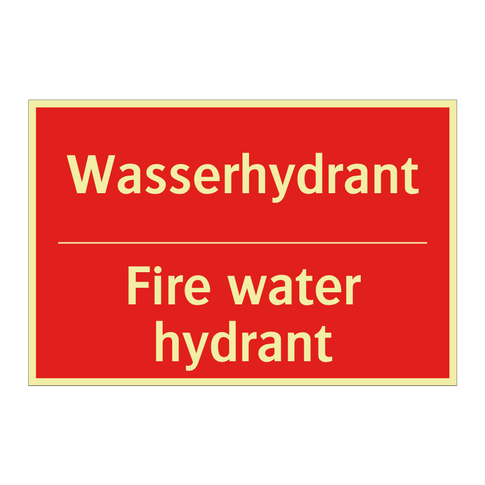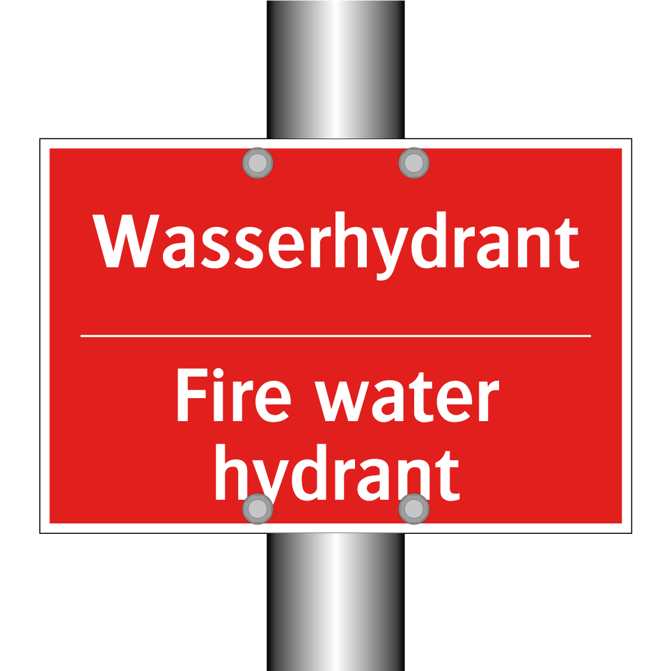 Zweisprachiges Brandschutzschild mit deutschem Text Wasserhydrant und englischem Text Fire water hydrant