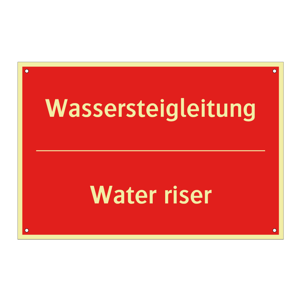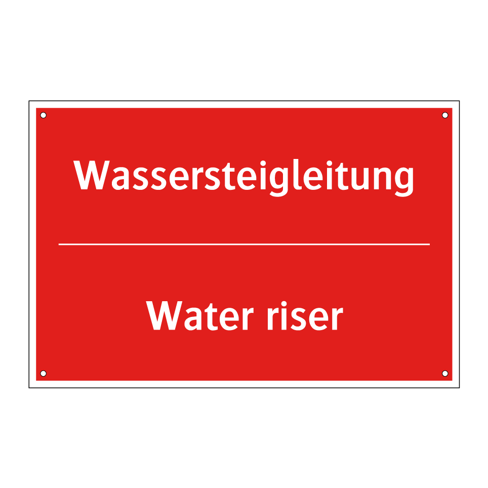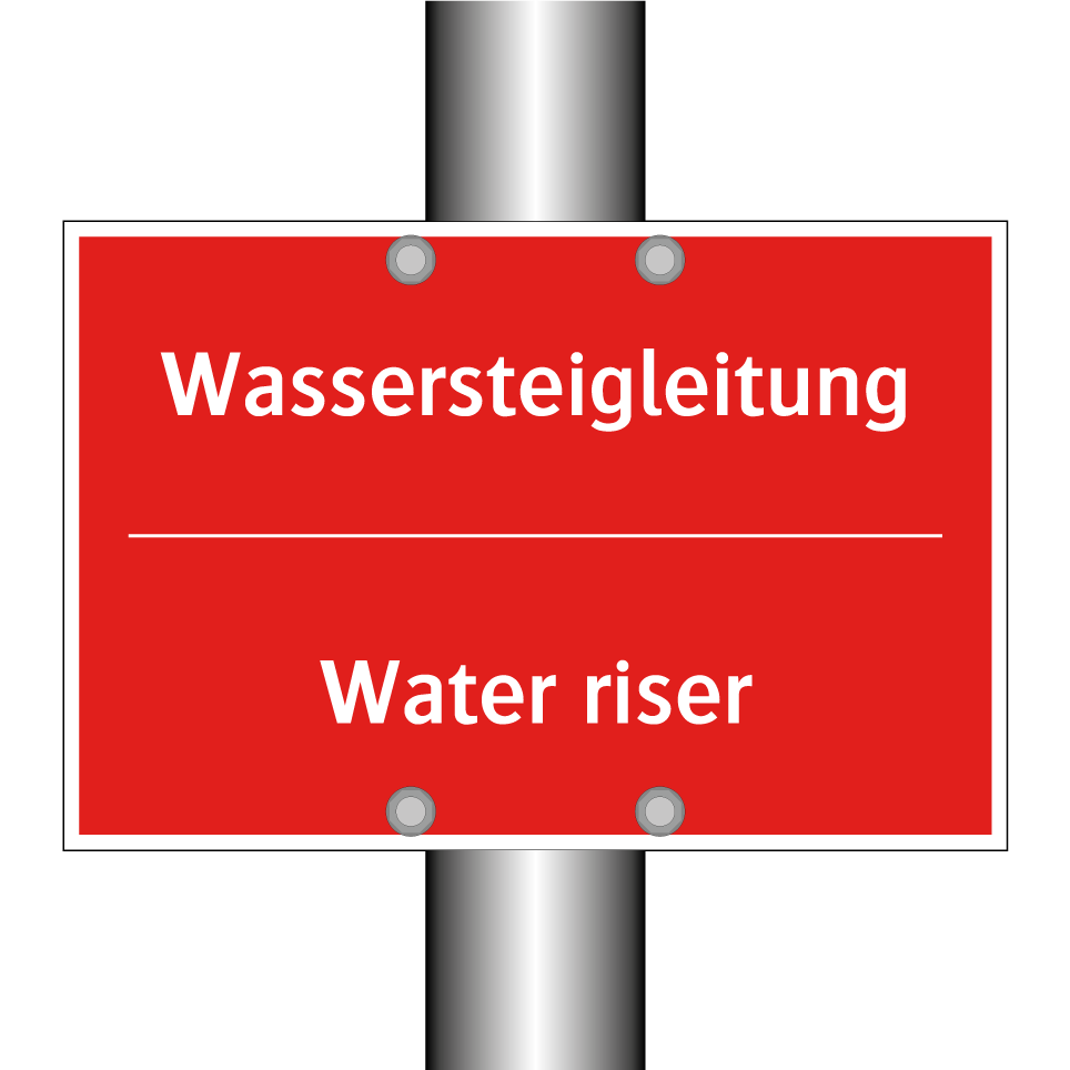 Zweisprachiges Brandschutzschild mit deutschem Text Wassersteigleitung und englischem Text Water riser