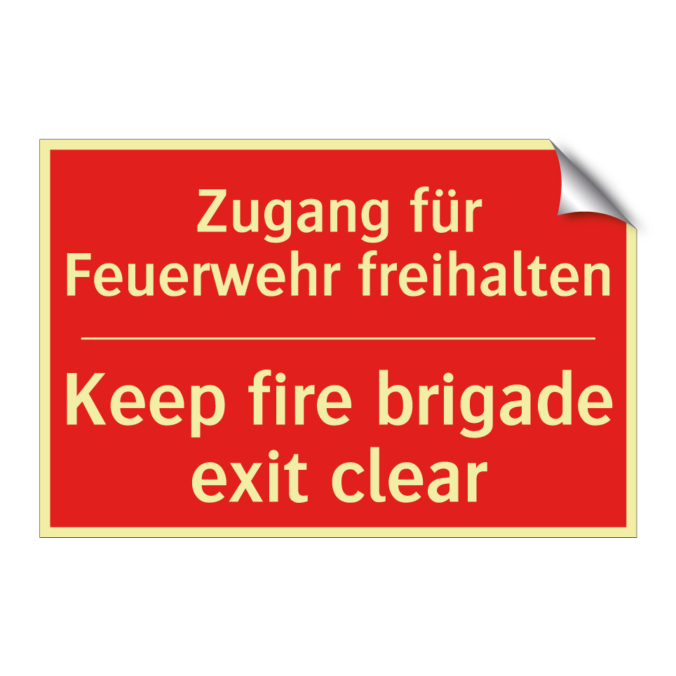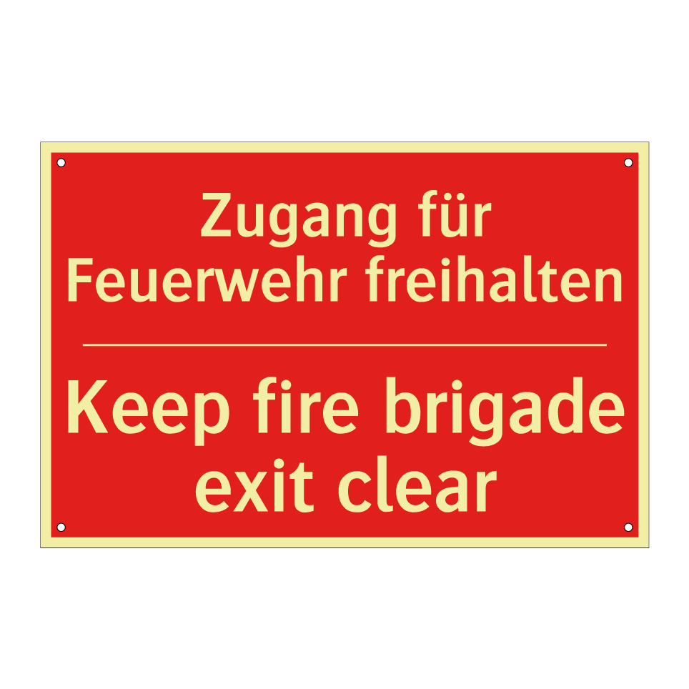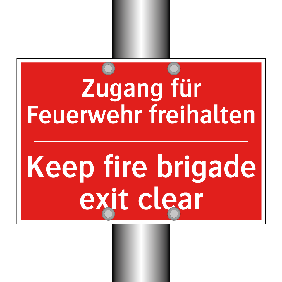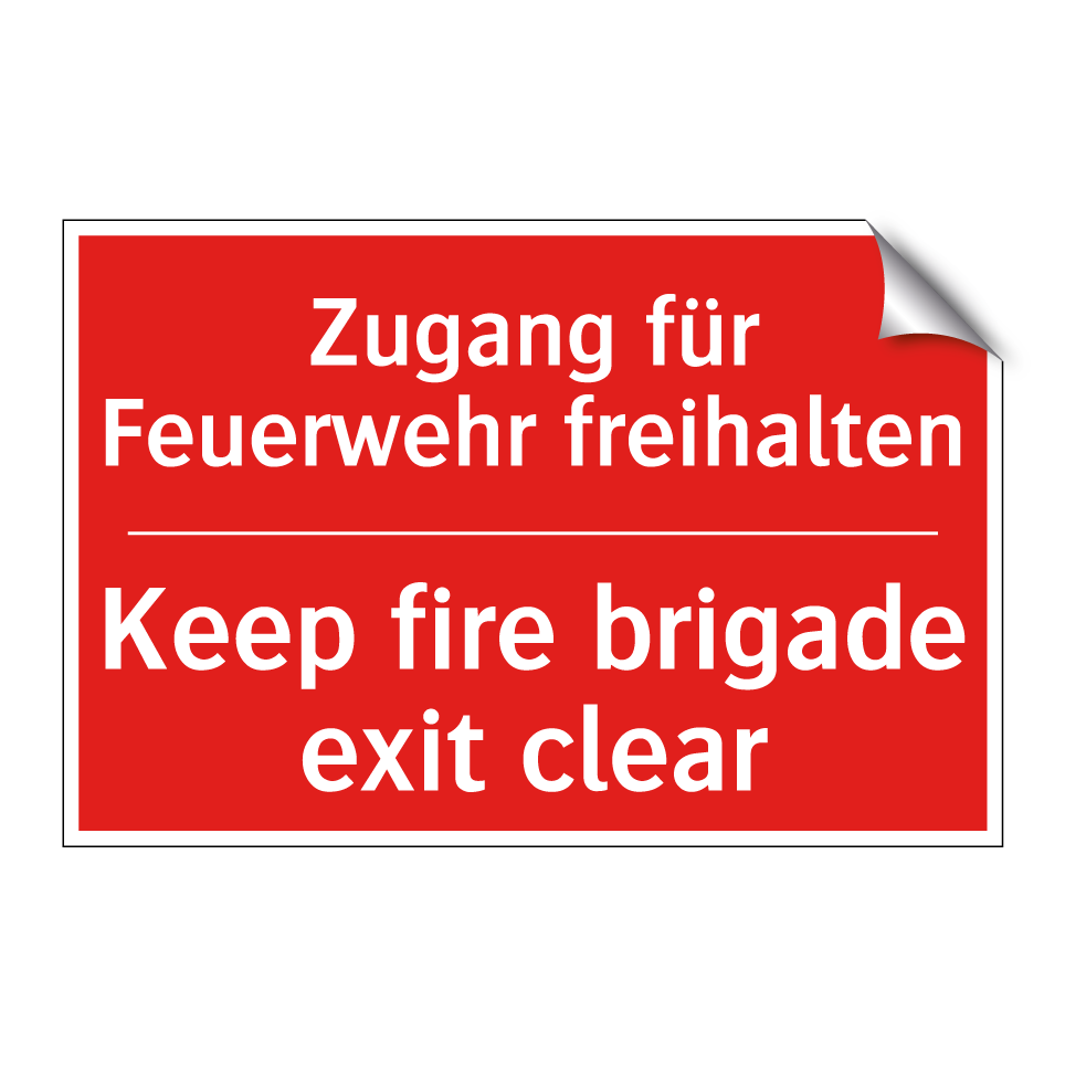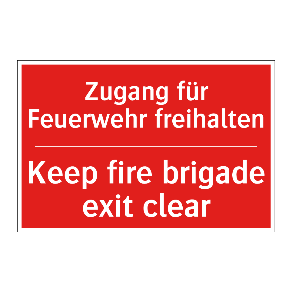 Zweisprachiges Brandschutzschild mit deutschem Text Zugang für Feuerwehr freihalten und englischem Text Keep fire brigade exit clear