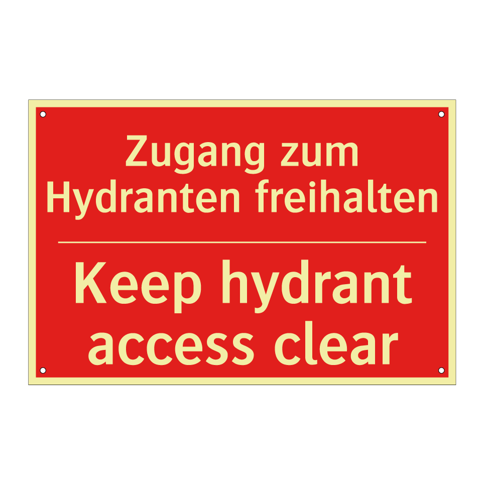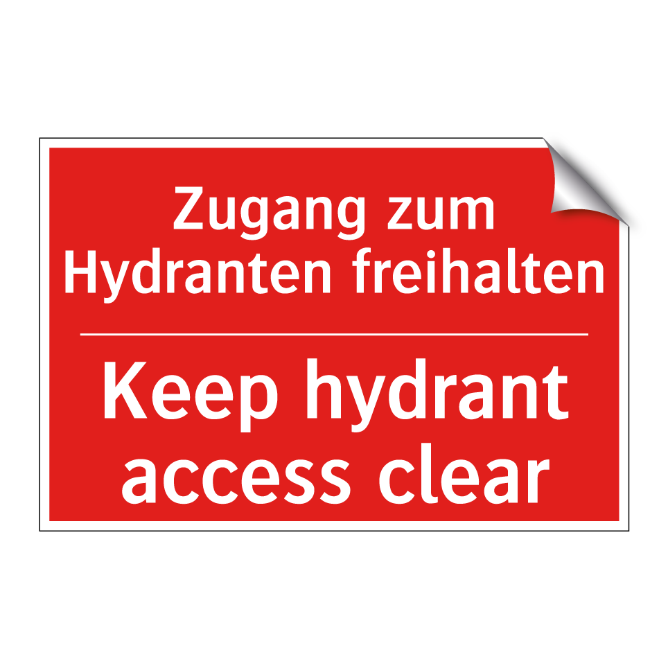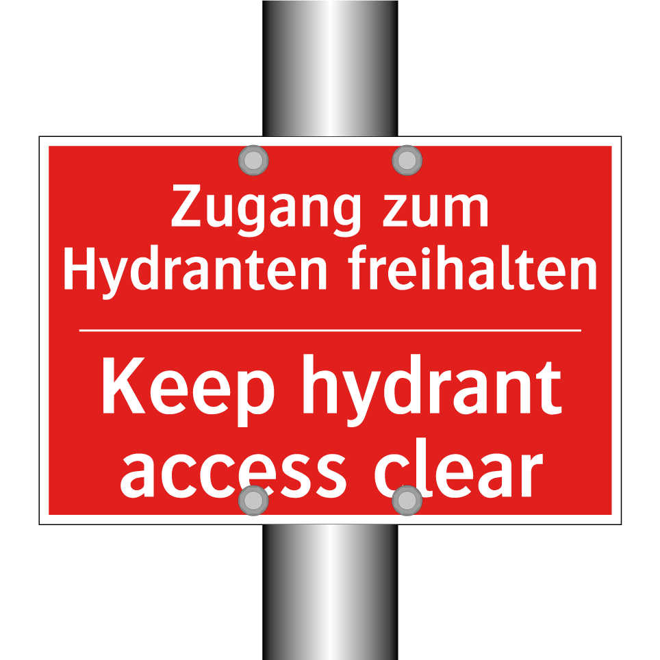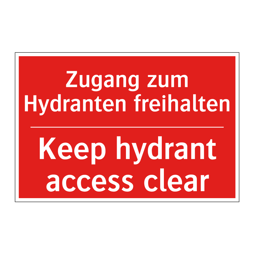 Zweisprachiges Brandschutzschild mit deutschem Text Zugang zum Hydranten freihalten und englischem Text Keep hydrant access clear