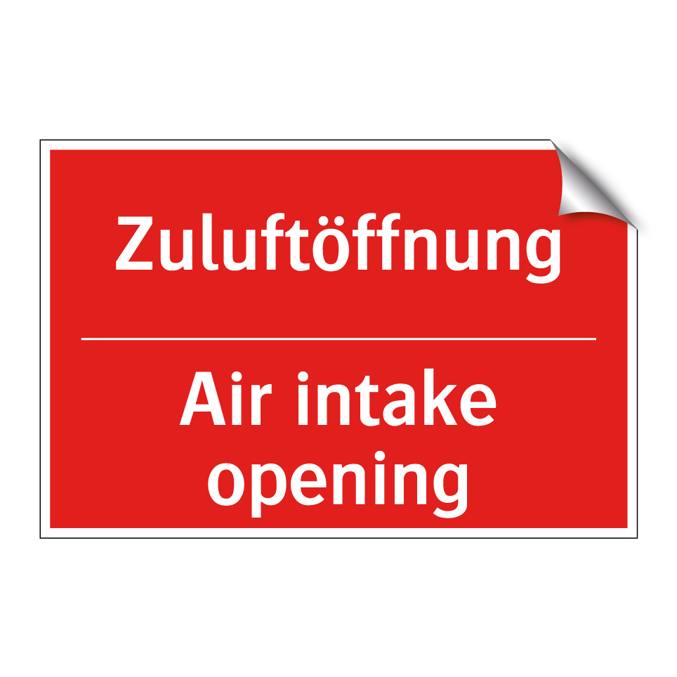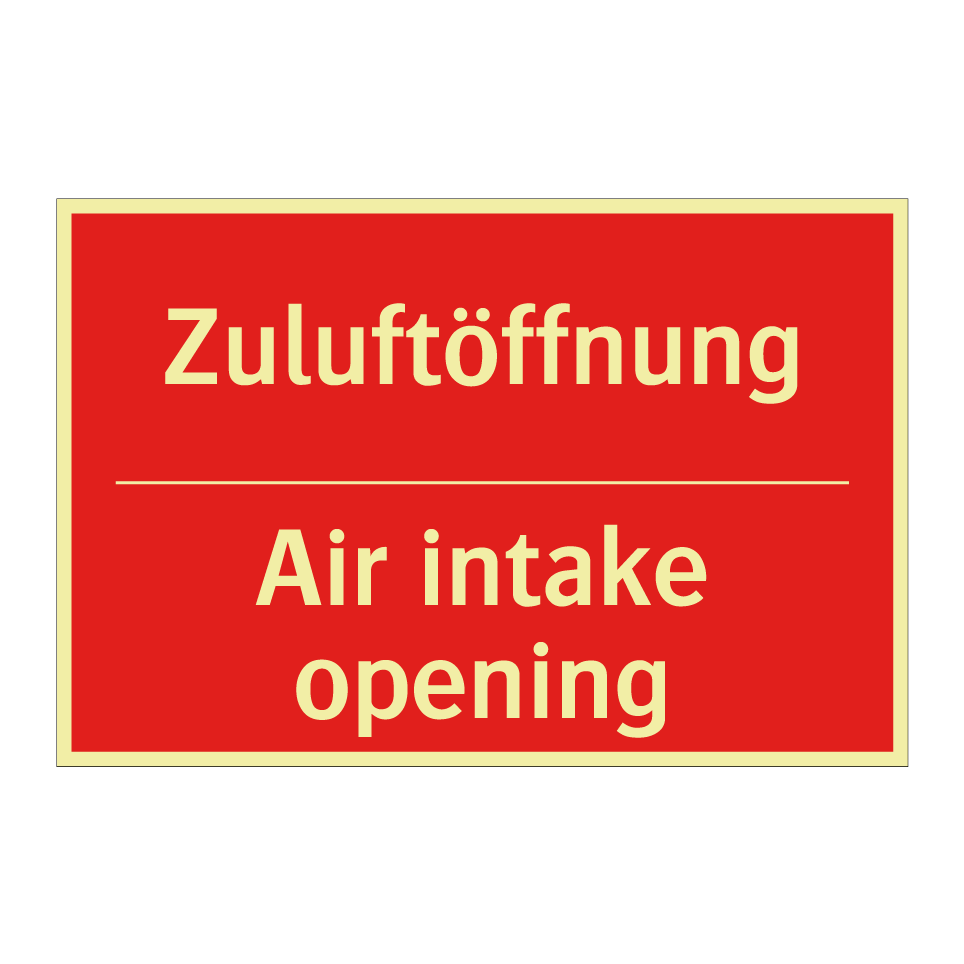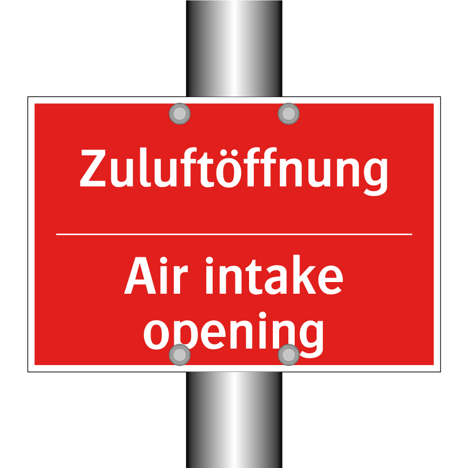 Zweisprachiges Brandschutzschild mit deutschem Text Zuluftöffnung und englischem Text Air intake opening