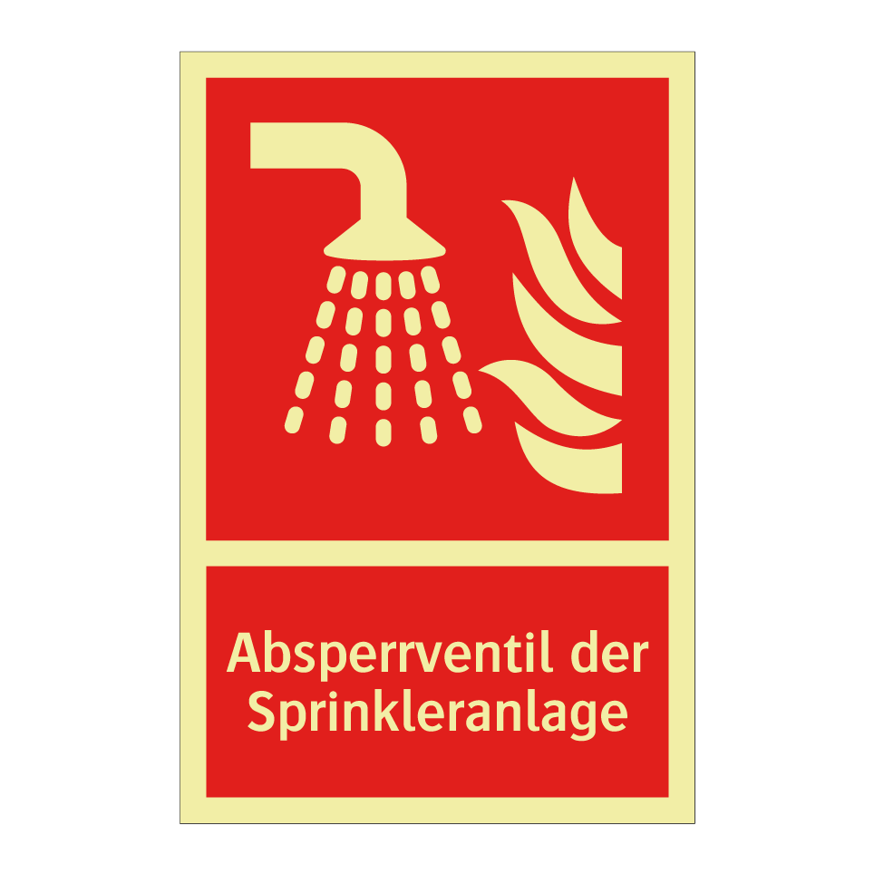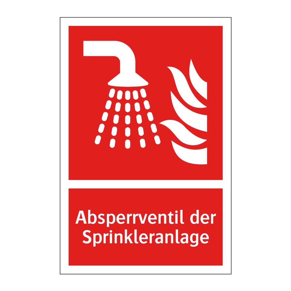 Brandschutzschild mit dem Text Absperrventil der Sprinkleranlage