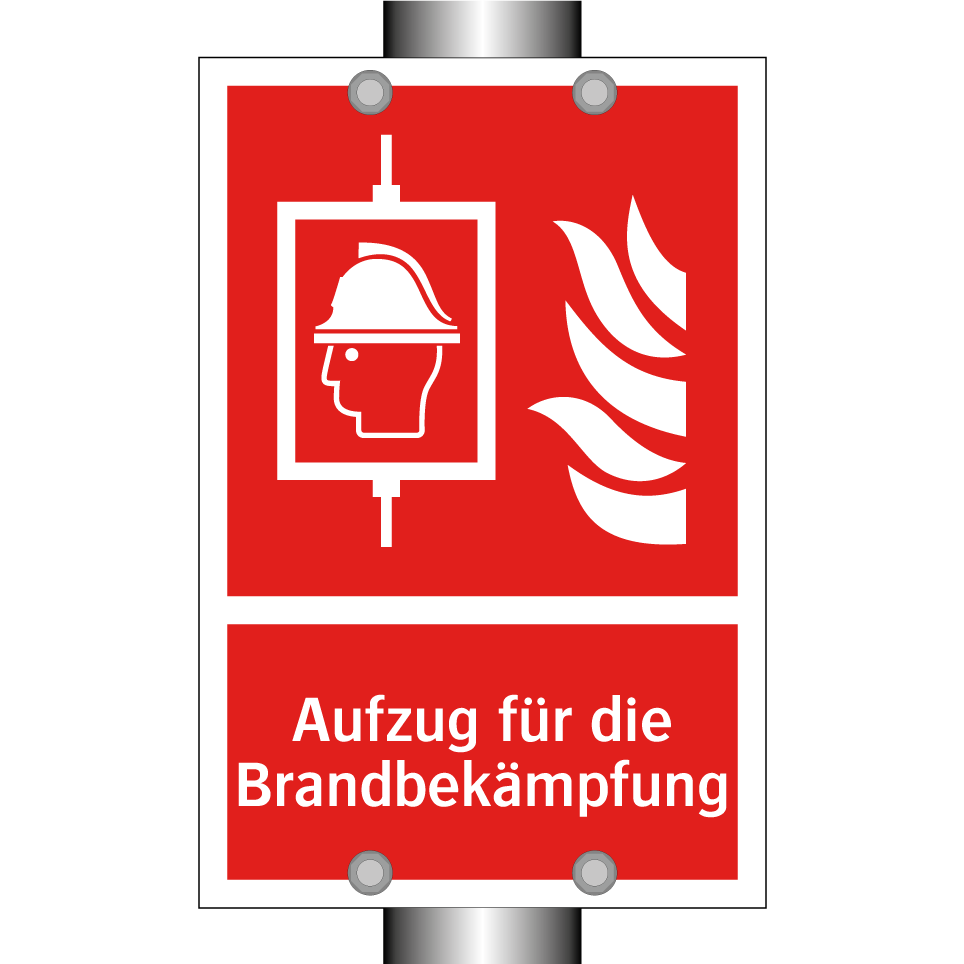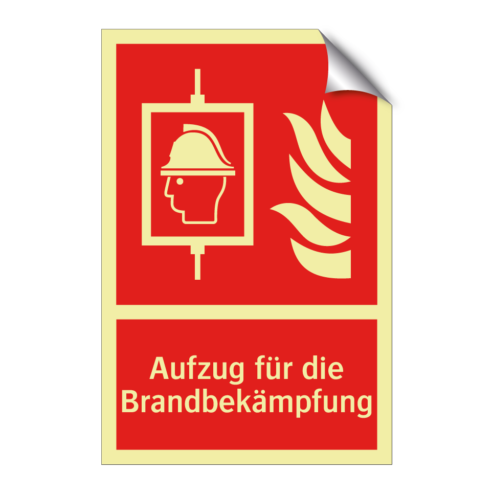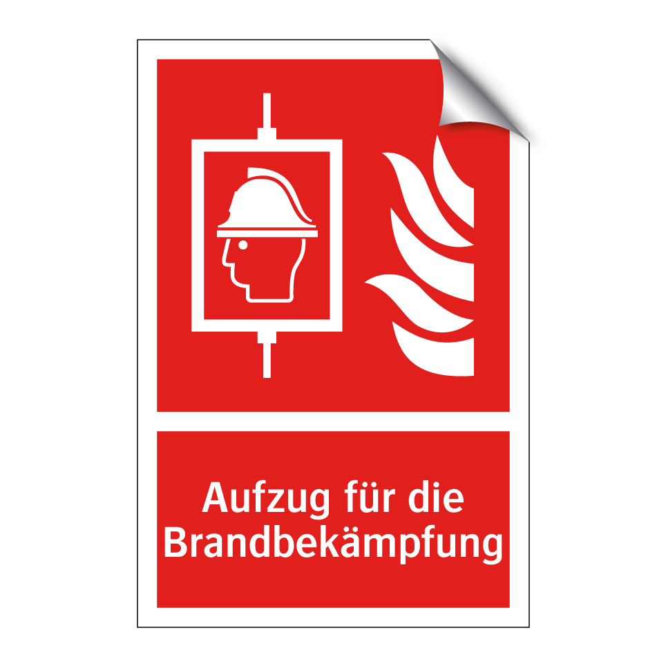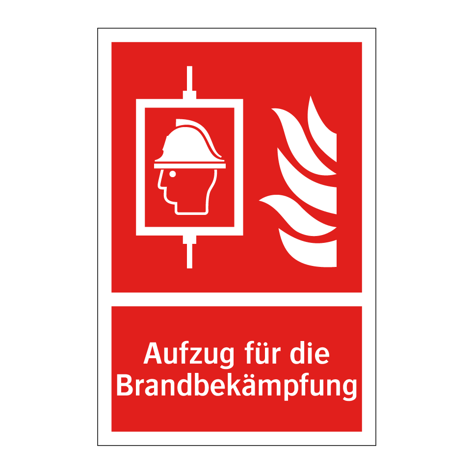 Brandschutzschild mit dem Text Aufzug für die Brandbekämpfung