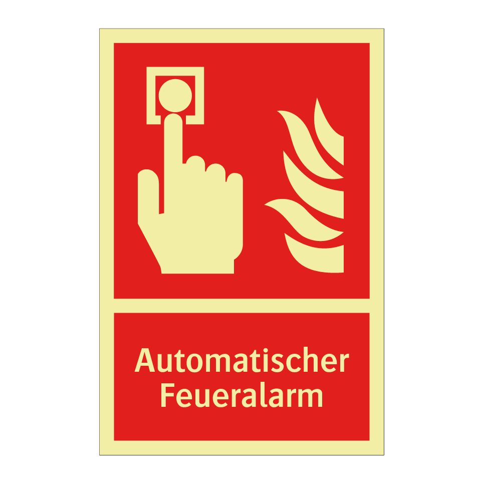 Brandschutzschild mit dem Text Automatischer Feueralarm