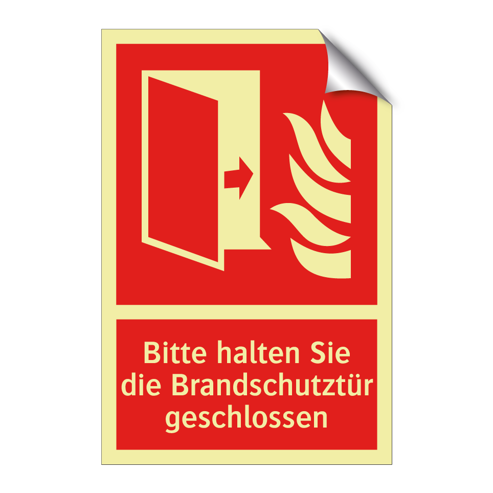 Brandschutzschild mit dem Text Bitte halten Sie die Brandschutztür geschlossen