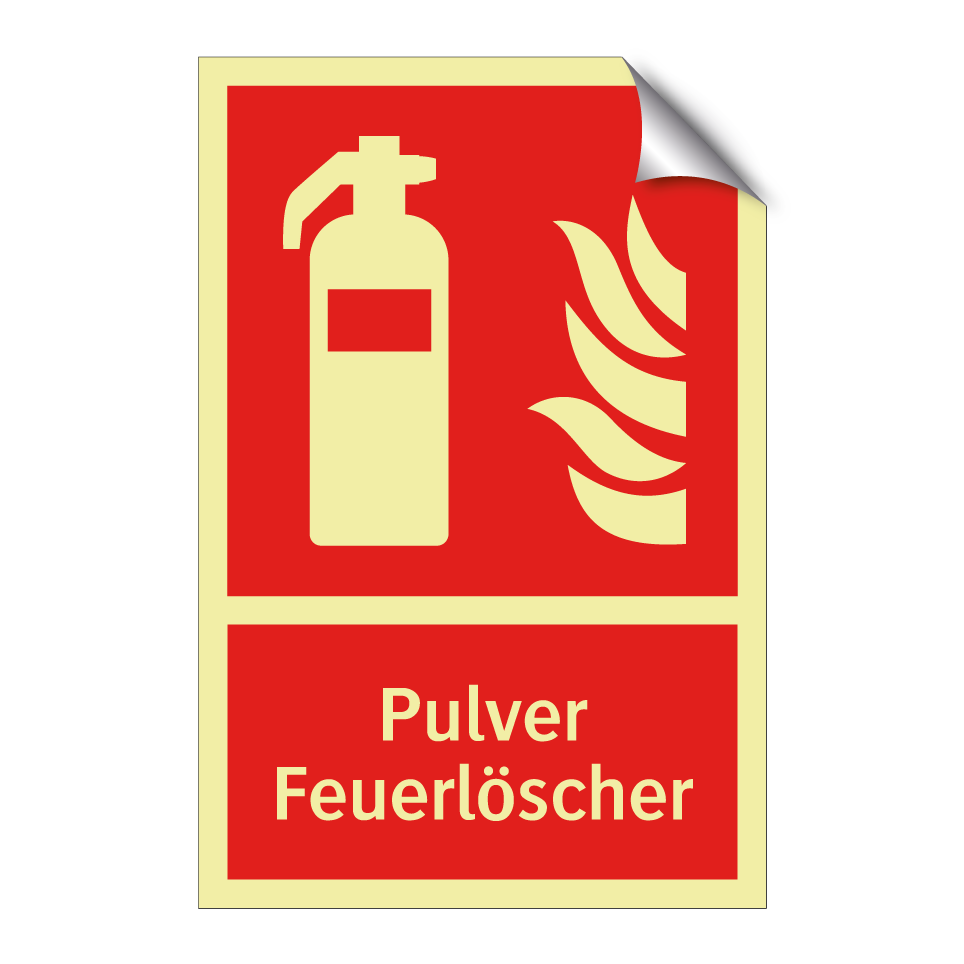 Brandschutzschild mit dem Text Pulver Feuerlöscher