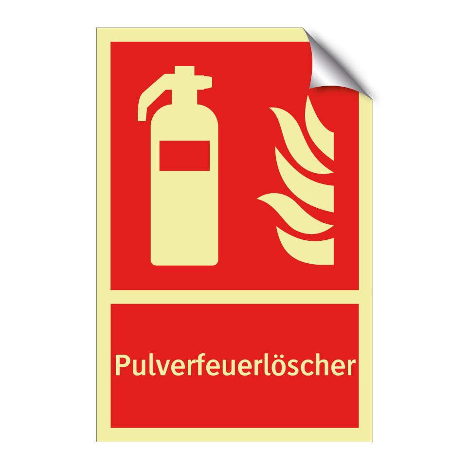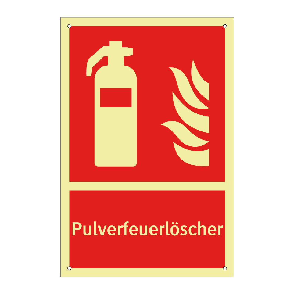 Brandschutzschild mit dem Text Pulverfeuerlöscher