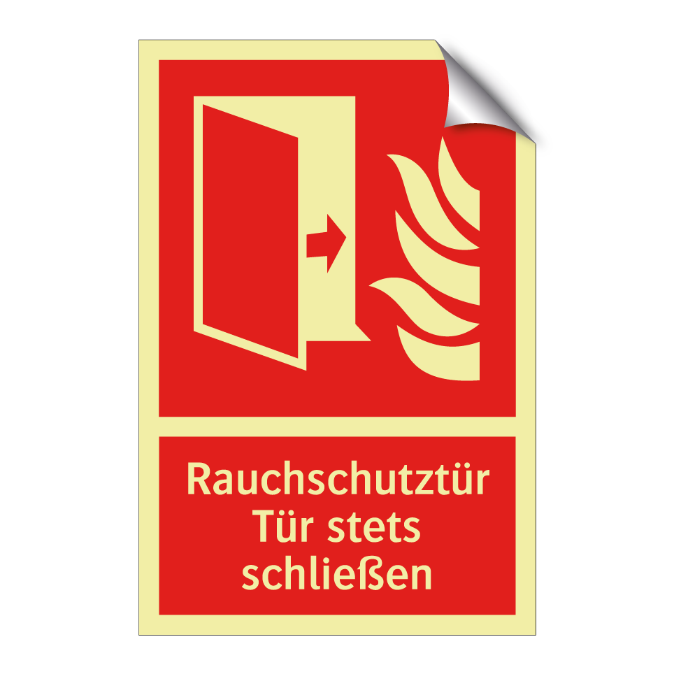 Brandschutzschild mit dem Text Rauchschutztür Tür stets schließen