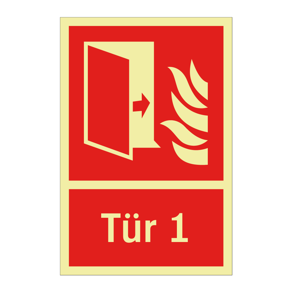 Brandschutzschild mit dem Text Tür 1