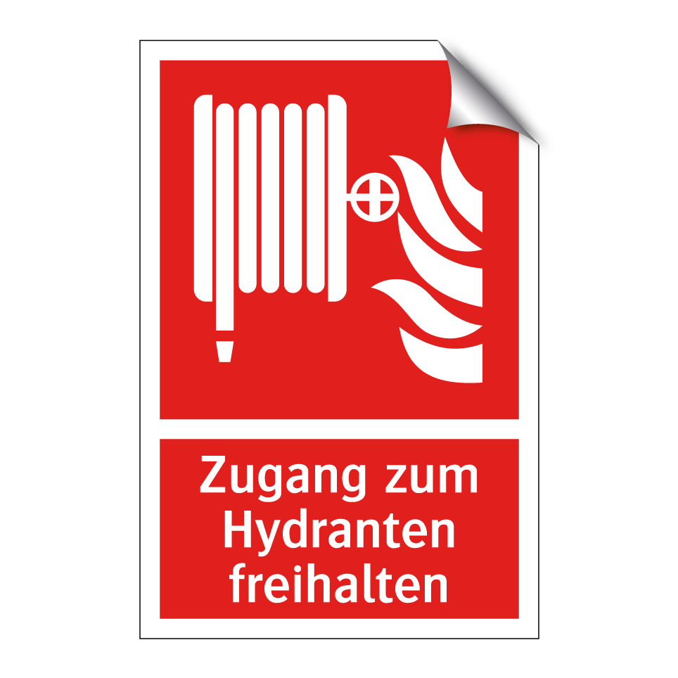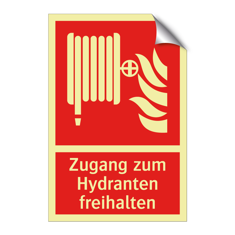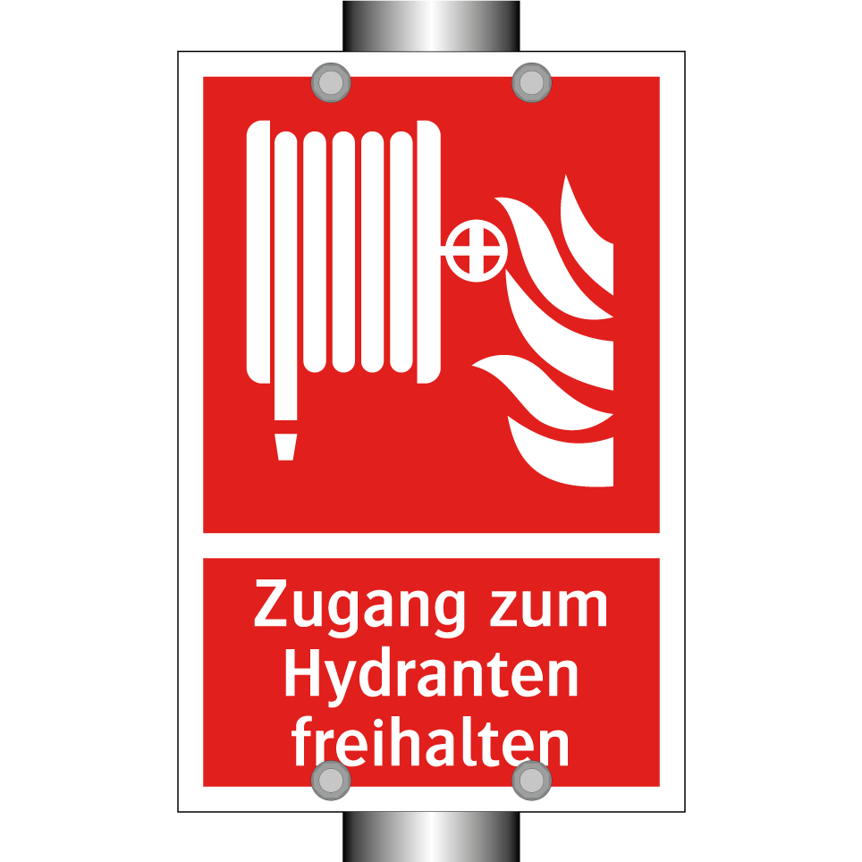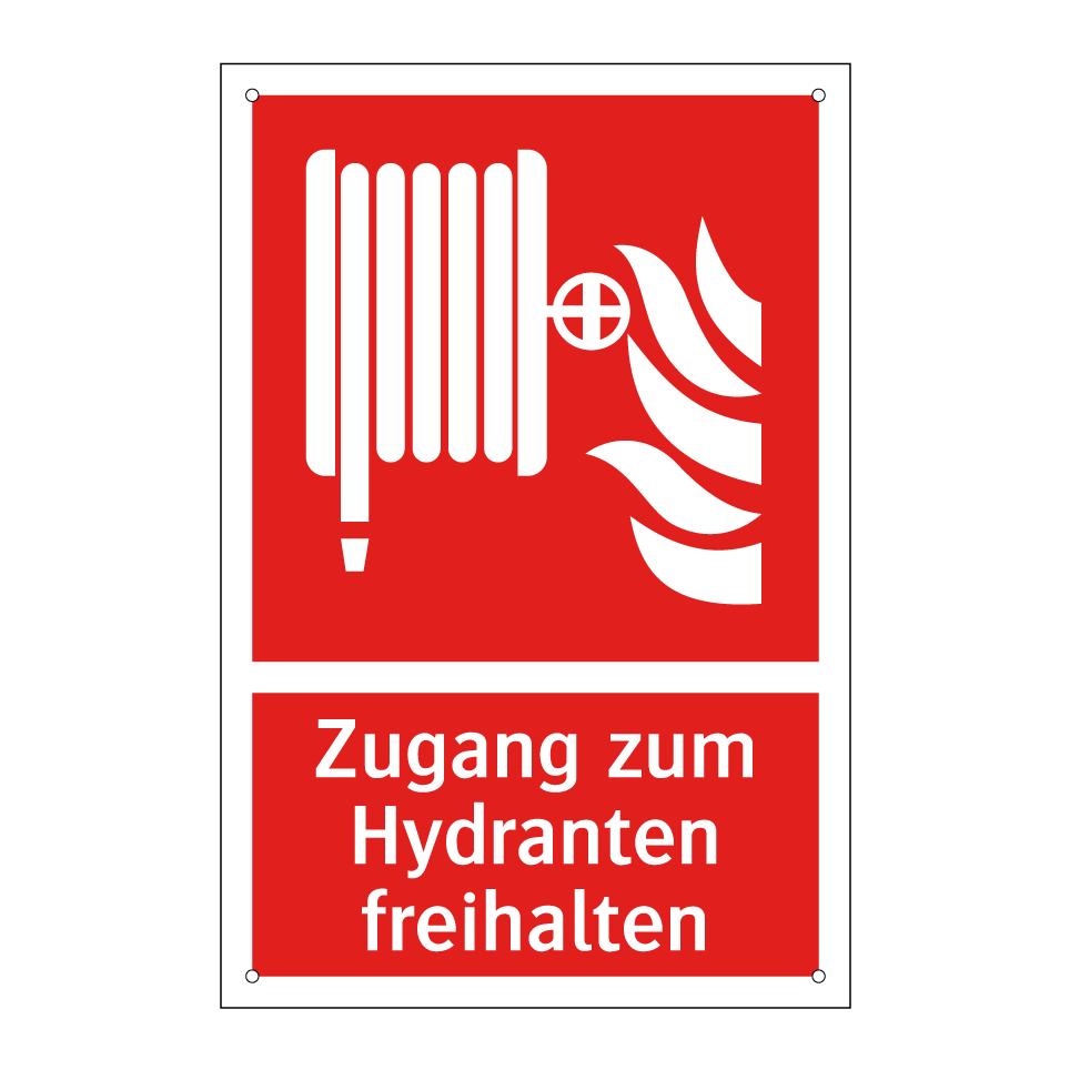 Brandschutzschild mit dem Text Zugang zum Hydranten freihalten