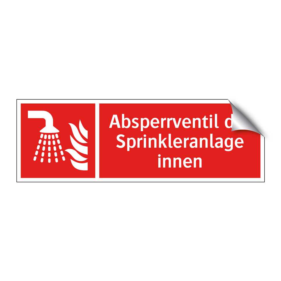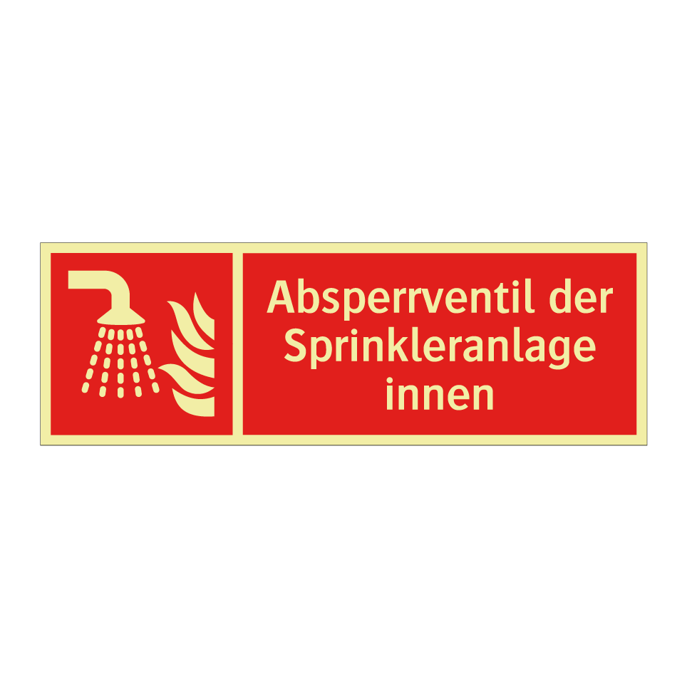 Brandschutzschild mit dem Text Absperrventil der Sprinkleranlage innen