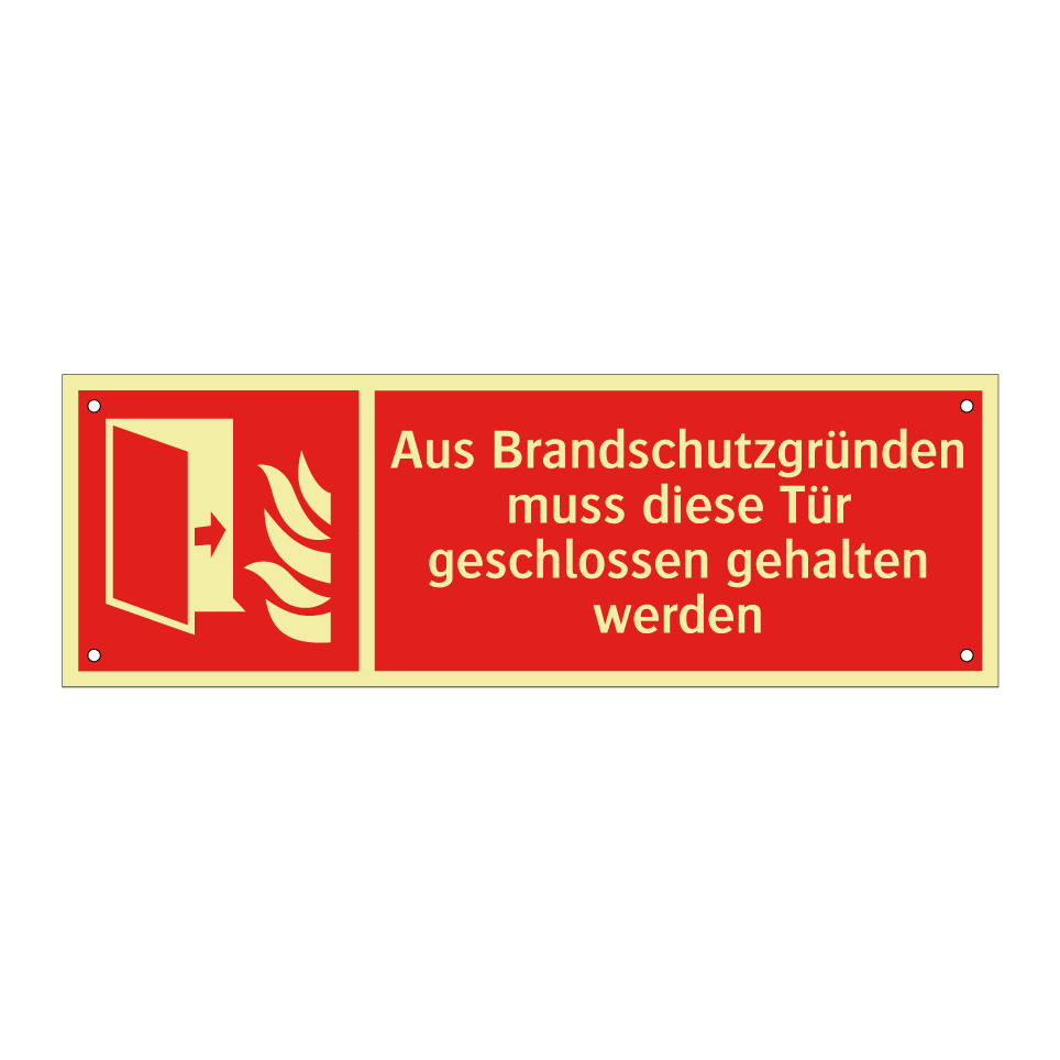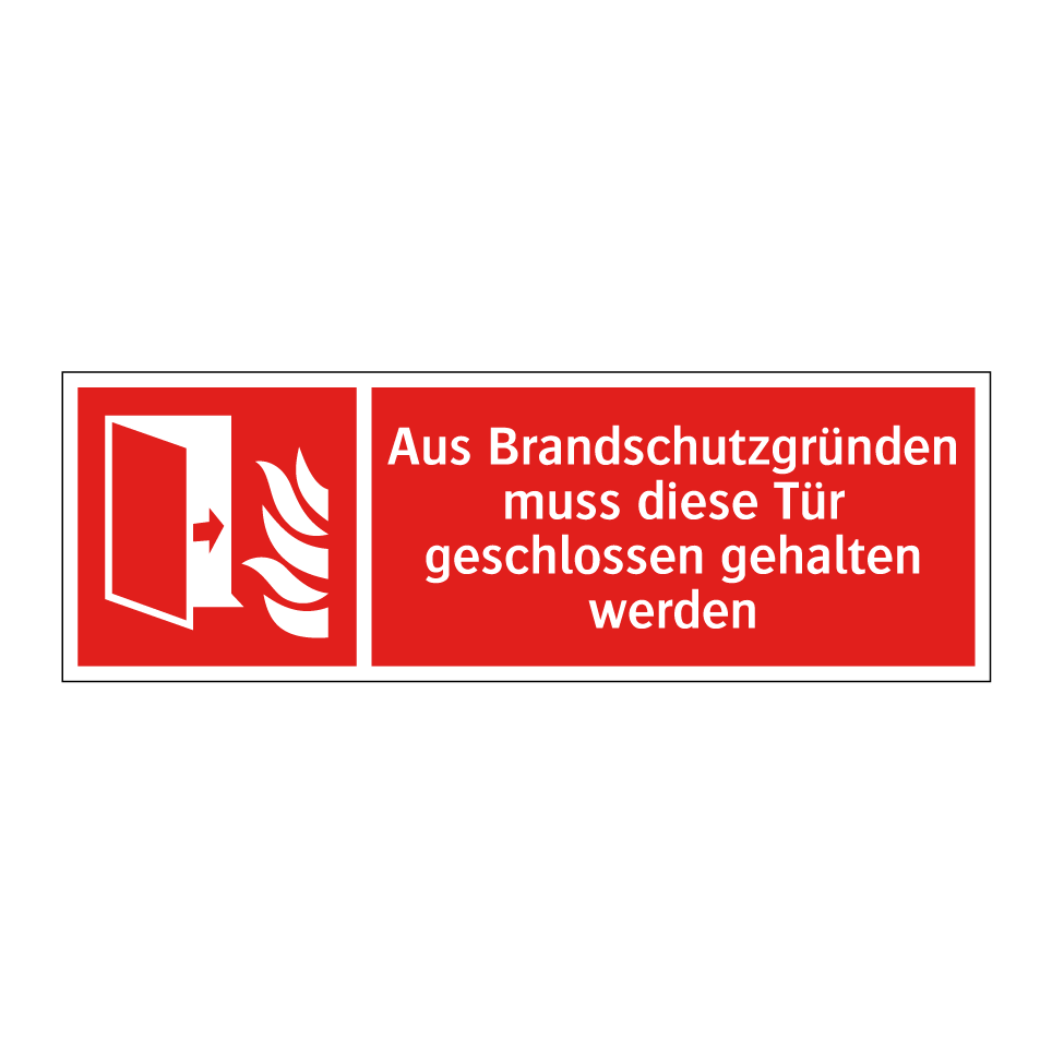 Brandschutzschild mit dem Text Aus Brandschutzgründen muss diese Tür geschlossen gehalten werden