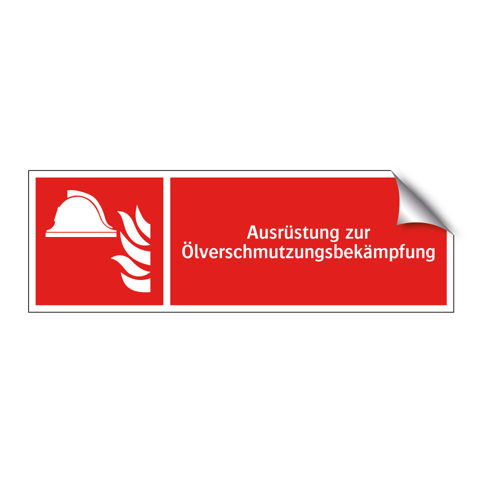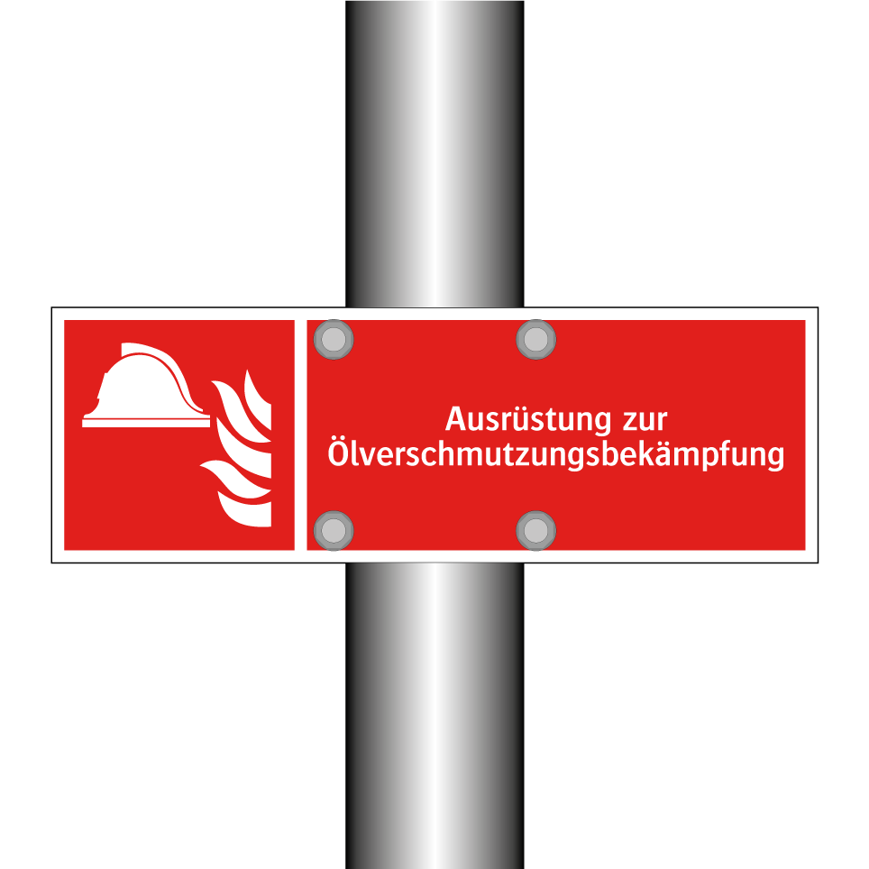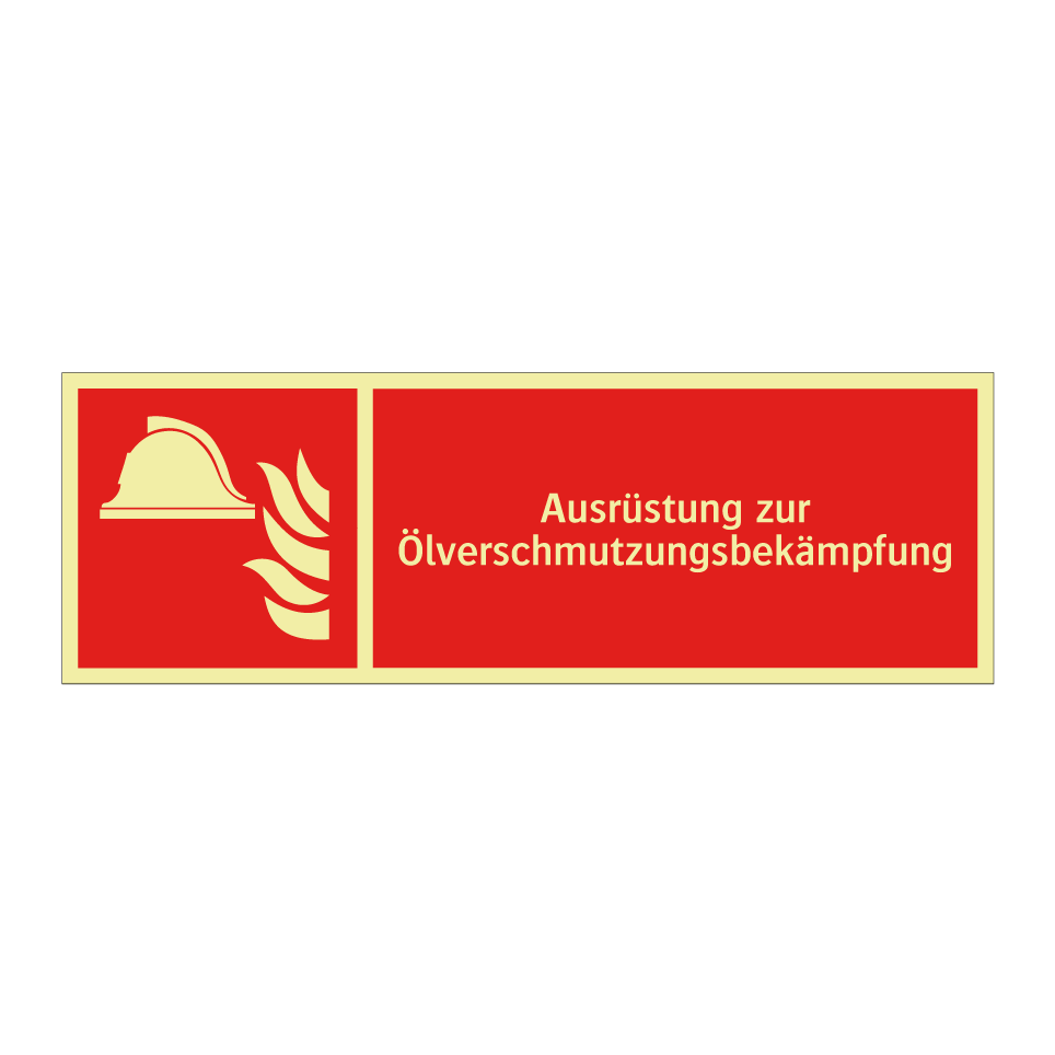 Brandschutzschild mit dem Text Ausrüstung zur Ölverschmutzungsbekämpfung