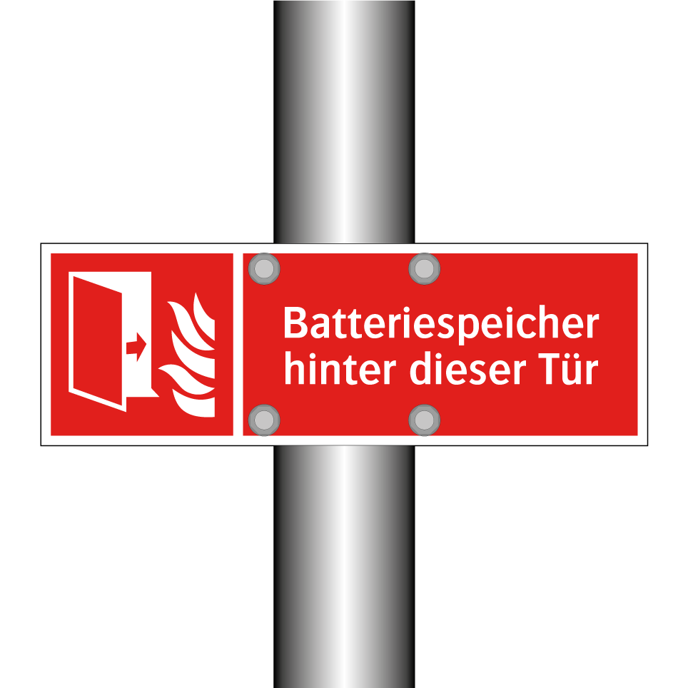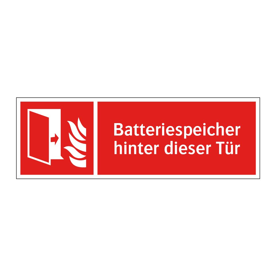 Brandschutzschild mit dem Text Batteriespeicher hinter dieser Tür