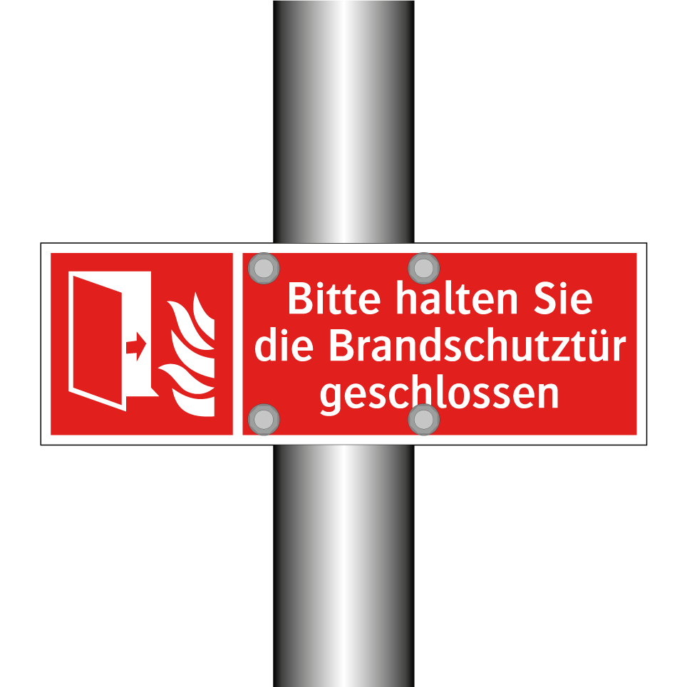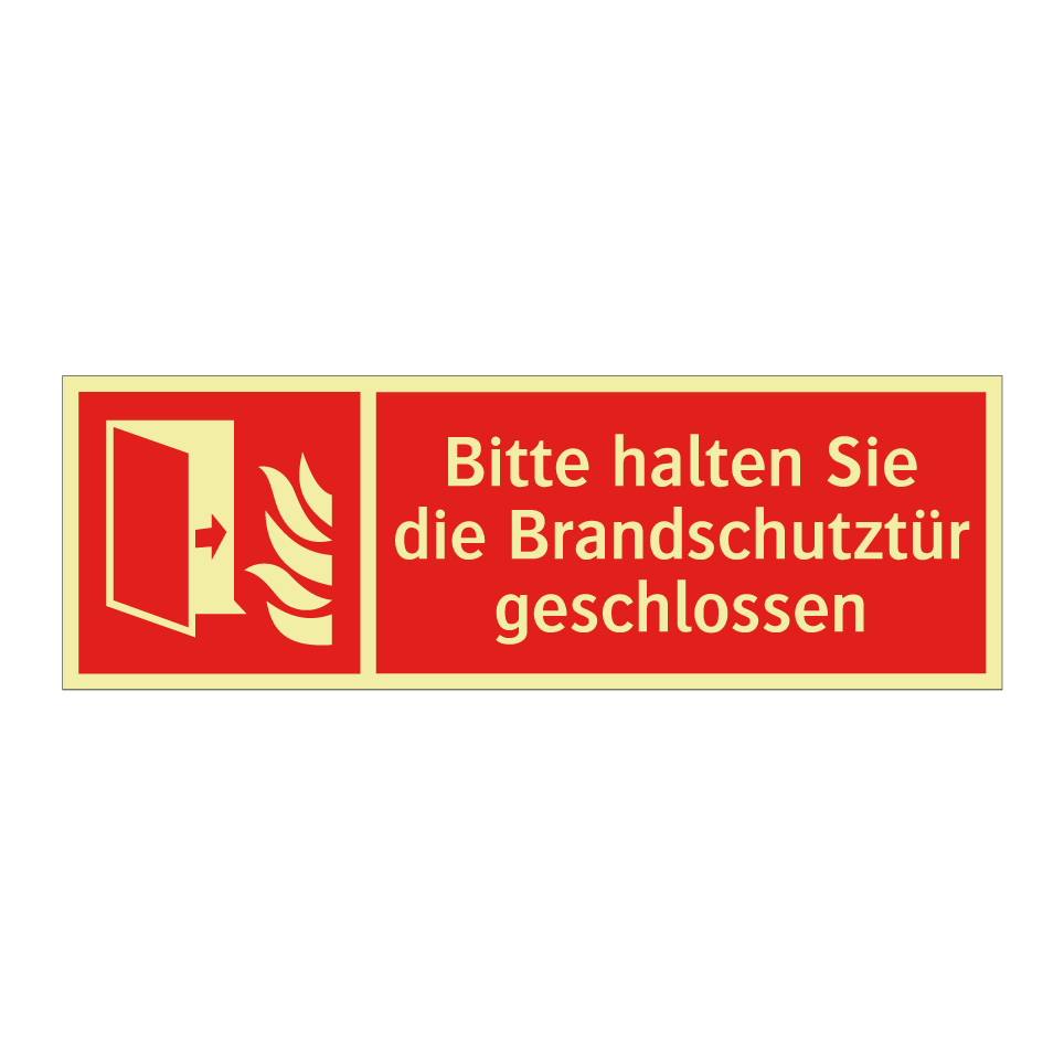 Brandschutzschild mit dem Text Bitte halten Sie die Brandschutztür geschlossen