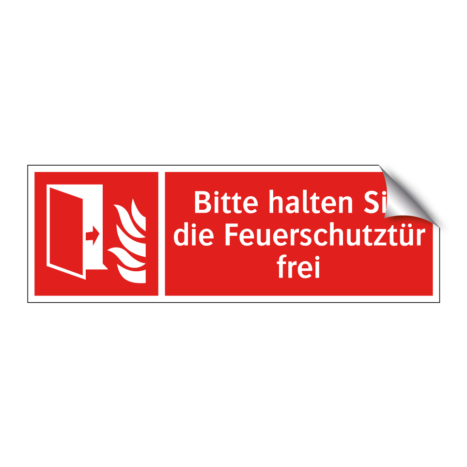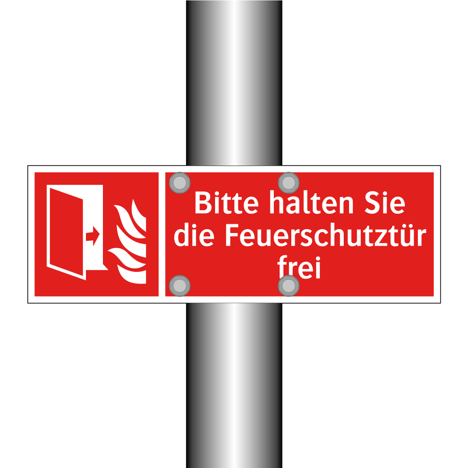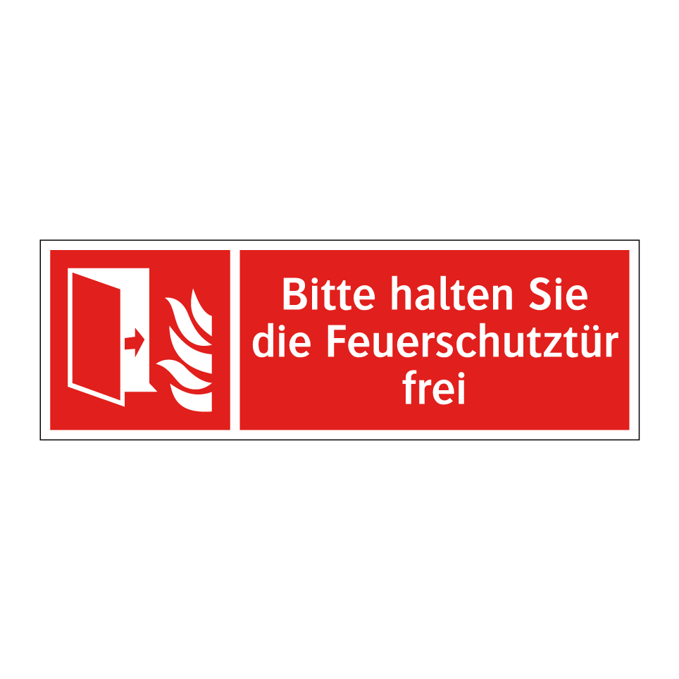 Brandschutzschild mit dem Text Bitte halten Sie die Feuerschutztür frei