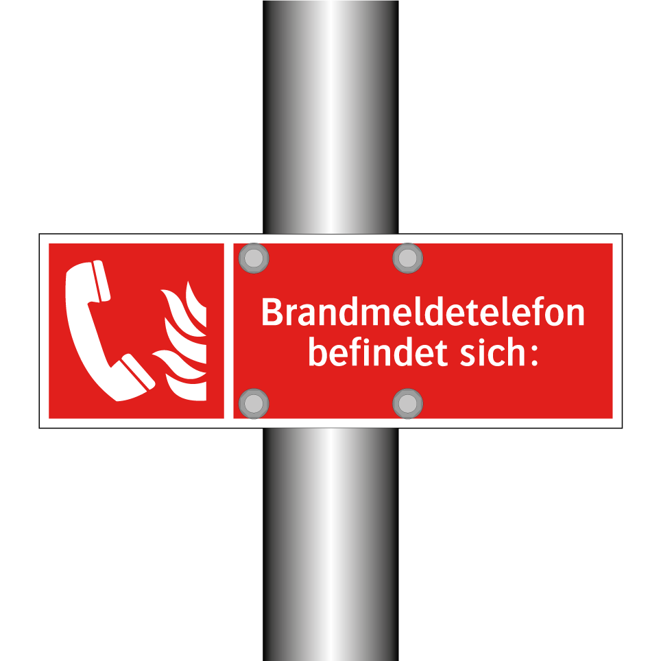 Brandschutzschild mit dem Text Brandmeldetelefon befindet sich: