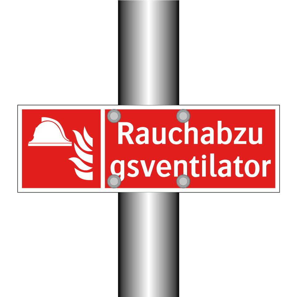 Brandschutzschild mit dem Text Rauchabzugsventilator