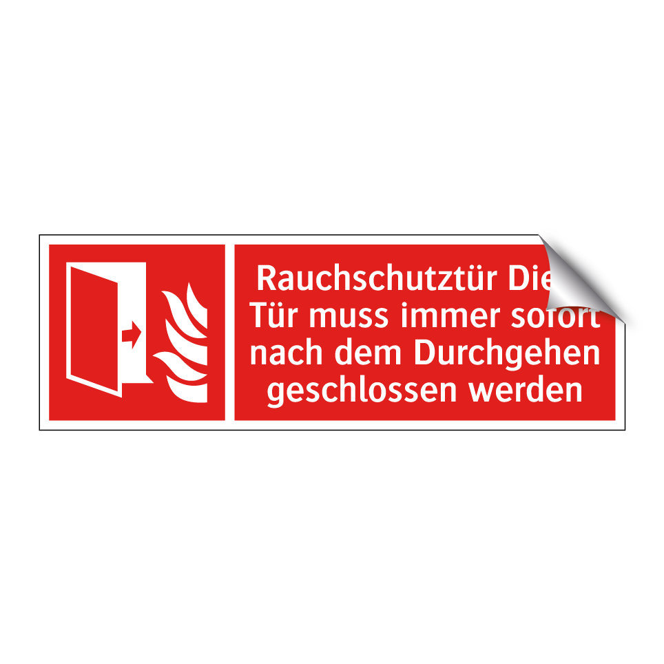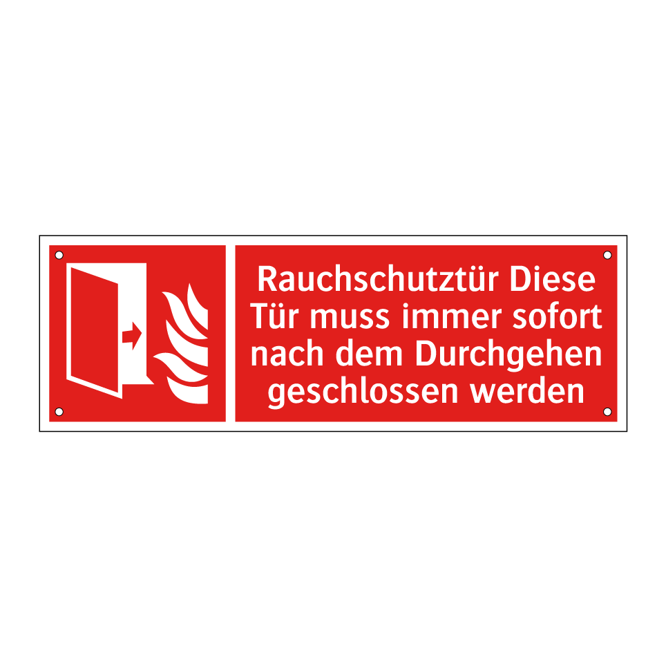 Brandschutzschild mit dem Text Rauchschutztür Diese Tür muss immer sofort nach dem Durchgehen geschlossen werden
