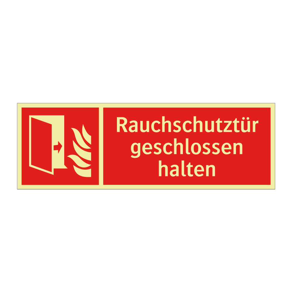 Brandschutzschild mit dem Text Rauchschutztür geschlossen halten