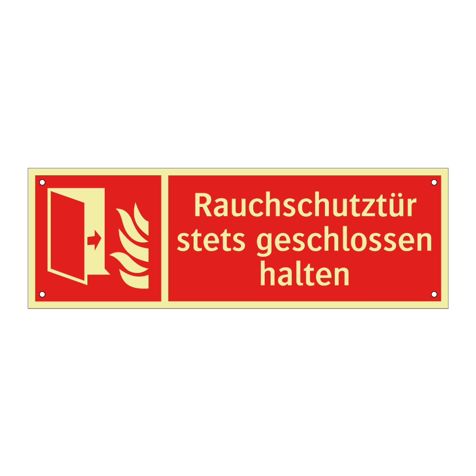 Brandschutzschild mit dem Text Rauchschutztür stets geschlossen halten
