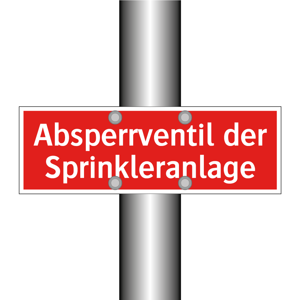 Brandschutzschild mit dem Text Absperrventil der Sprinkleranlage