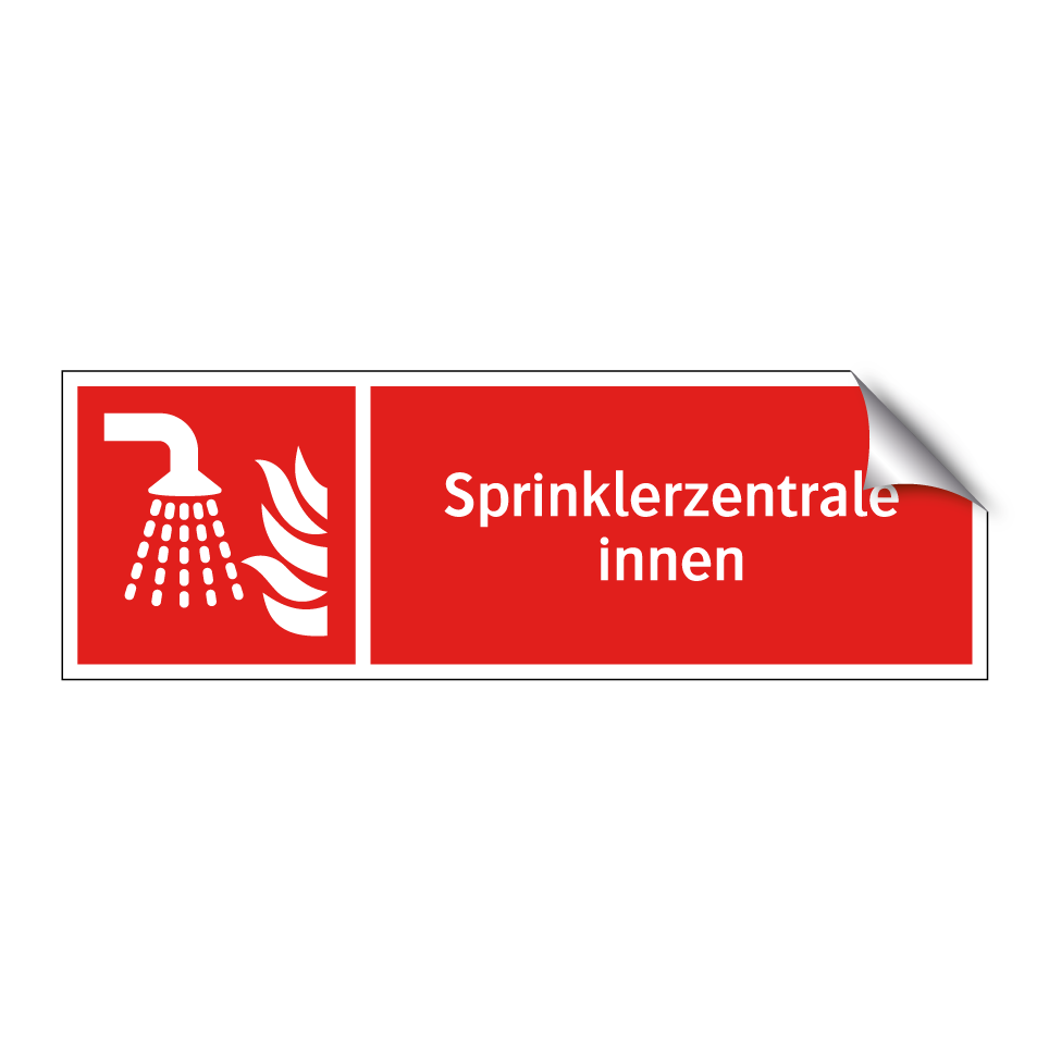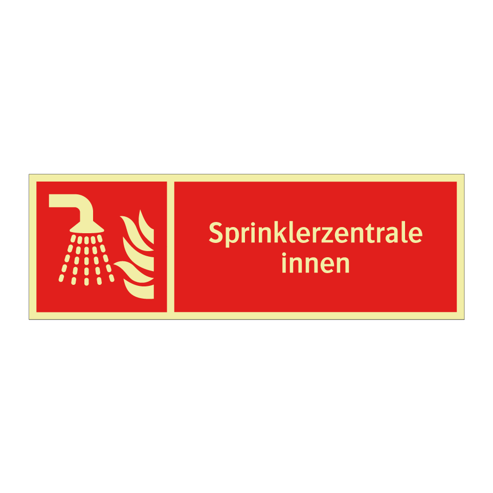 Brandschutzschild mit dem Text Sprinklerzentrale innen
