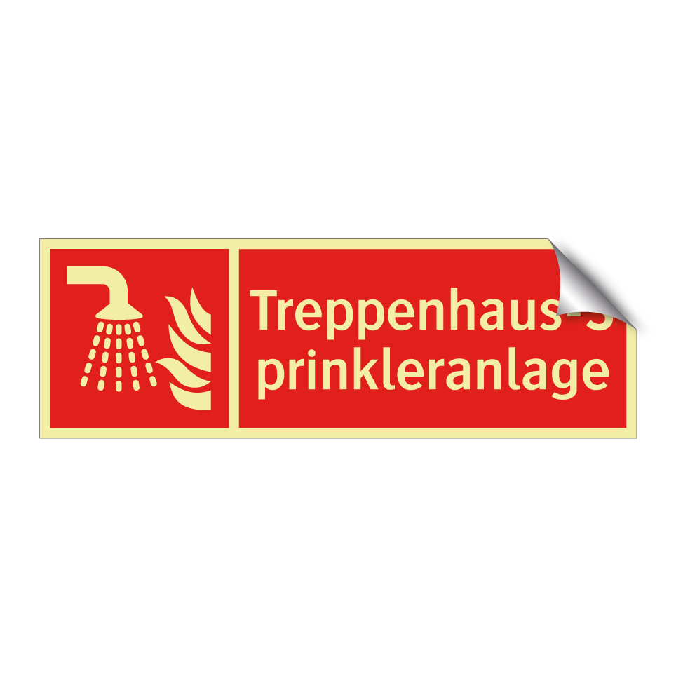 Brandschutzschild mit dem Text Treppenhaus-Sprinkleranlage