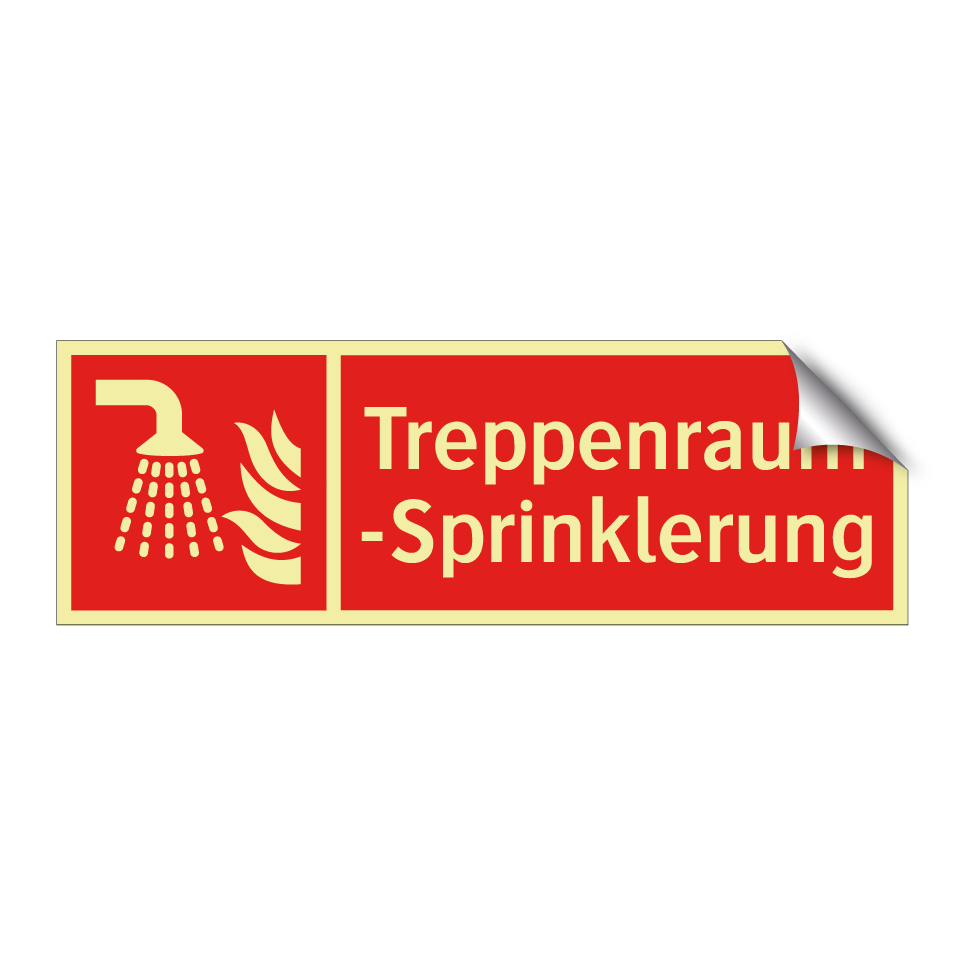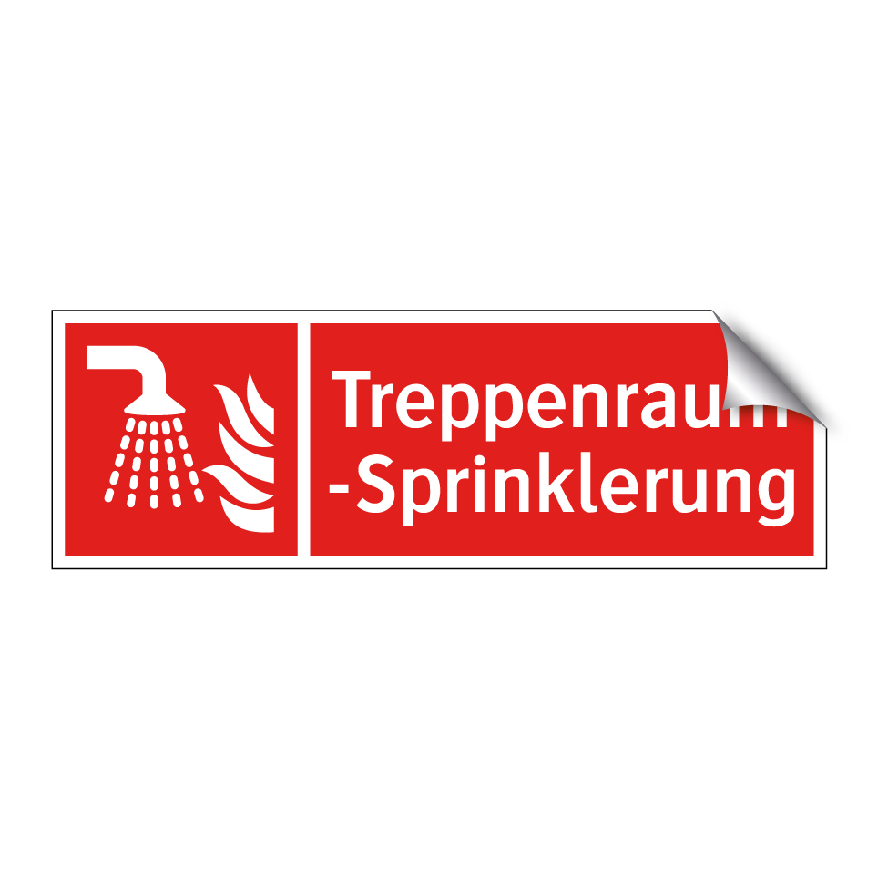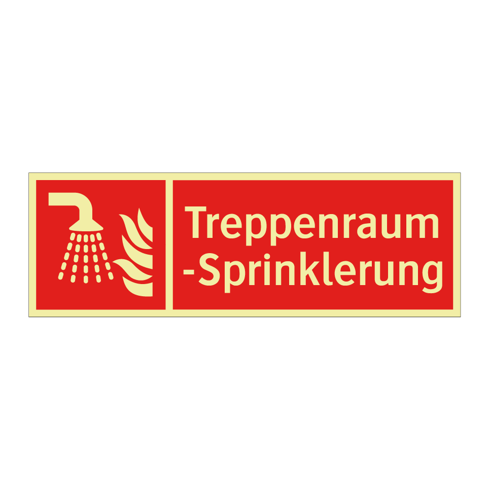Brandschutzschild mit dem Text Treppenraum-Sprinklerung