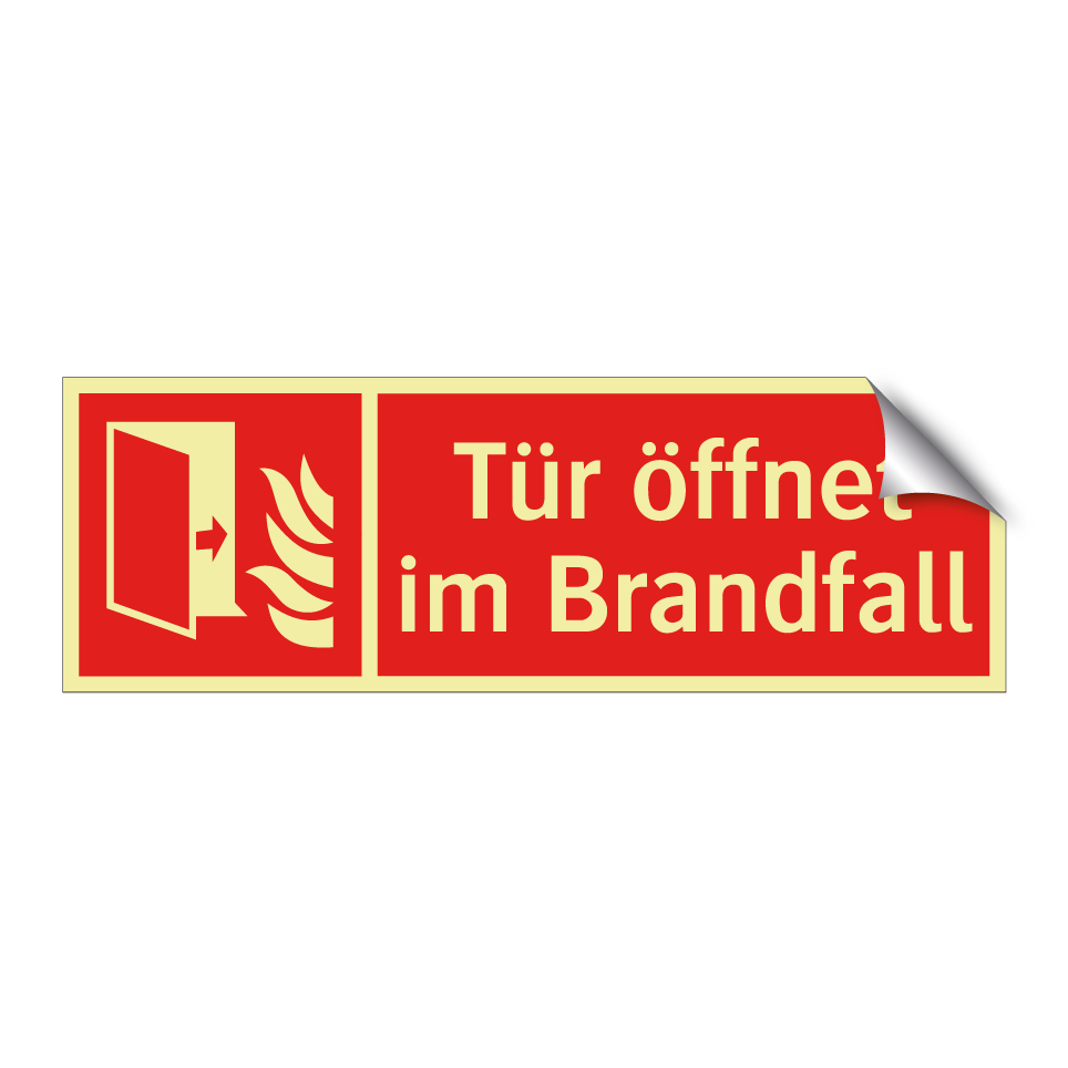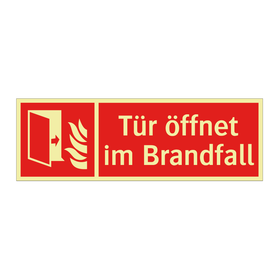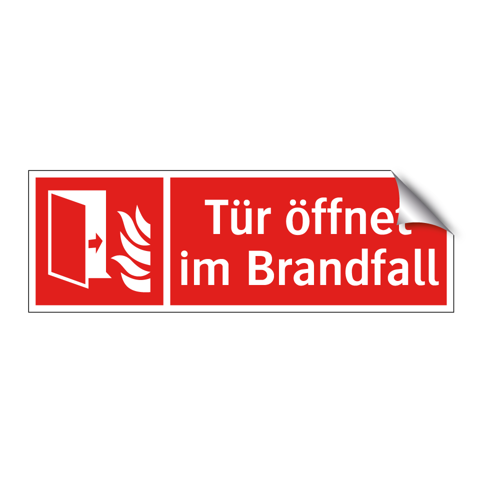 Brandschutzschild mit dem Text Tür öffnet im Brandfall