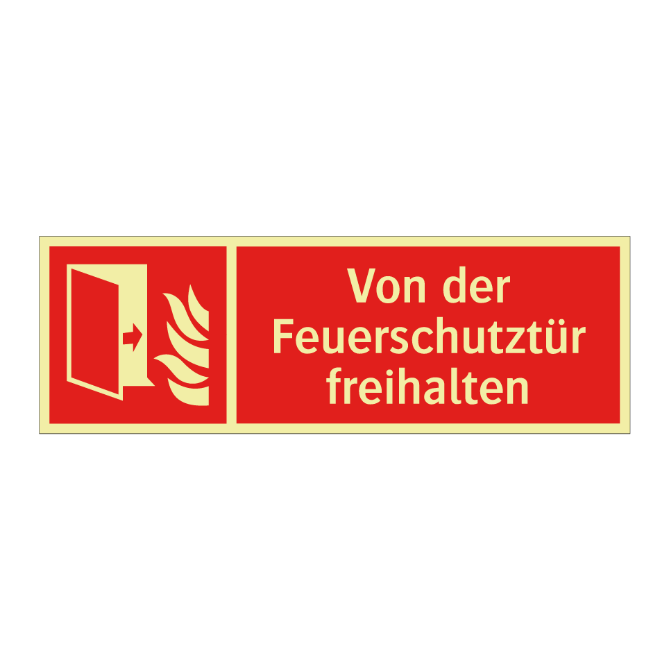 Brandschutzschild mit dem Text Von der Feuerschutztür freihalten