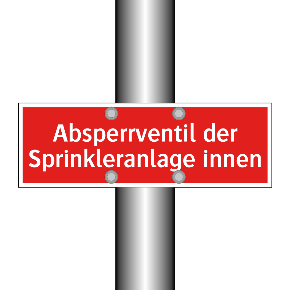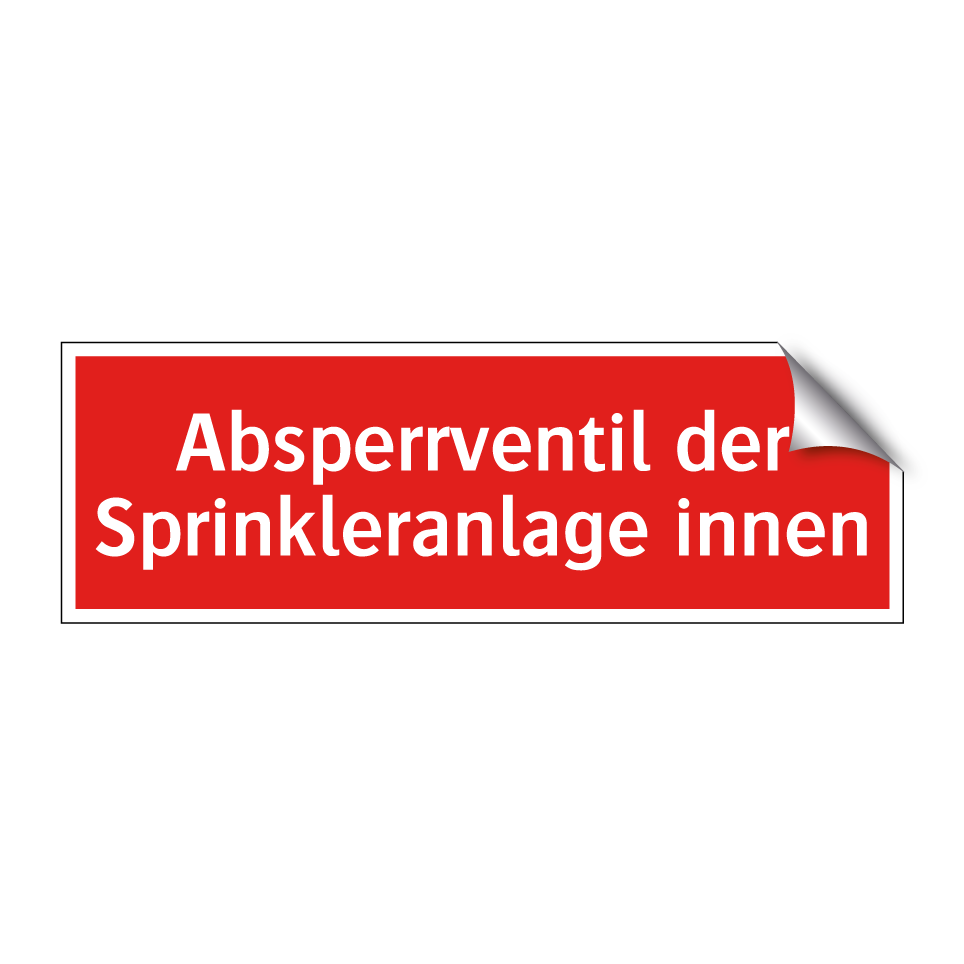 Brandschutzschild mit dem Text Absperrventil der Sprinkleranlage innen