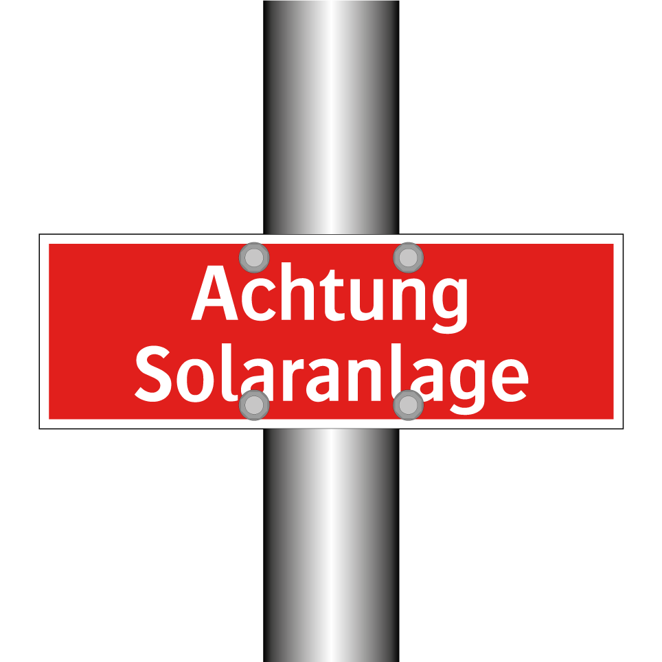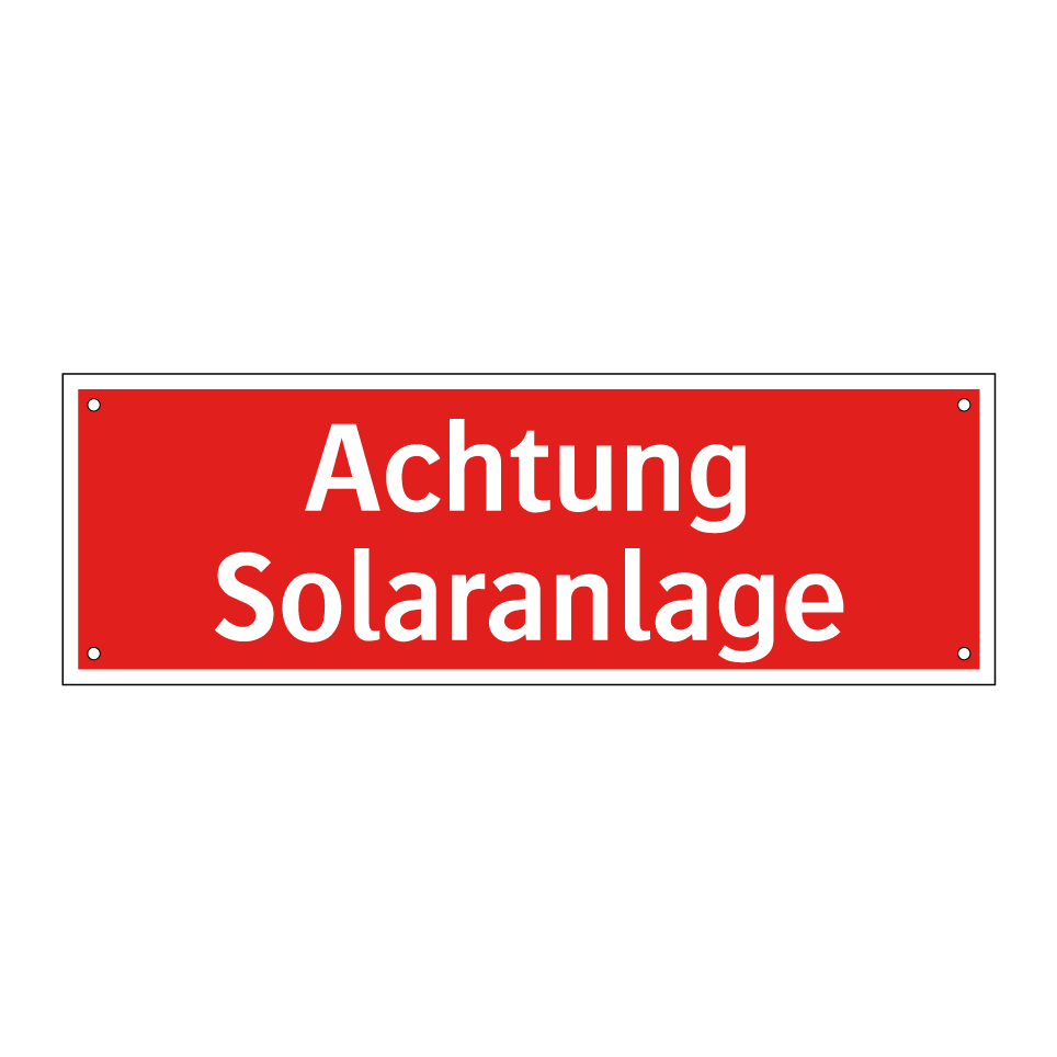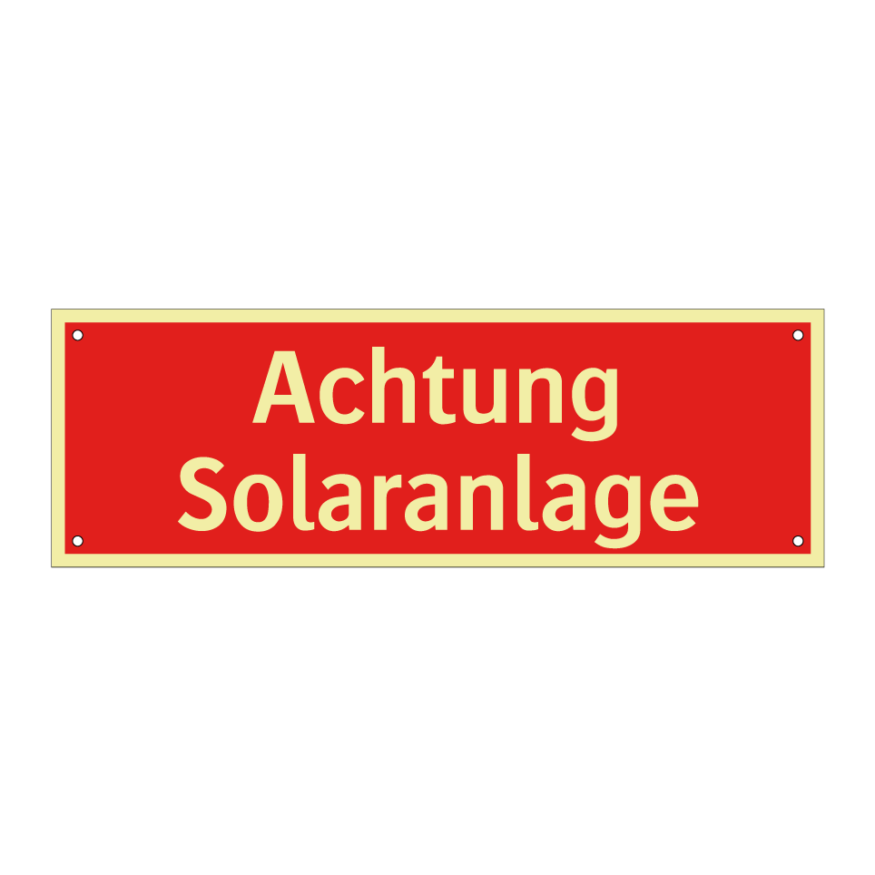 Brandschutzschild mit dem Text Achtung Solaranlage