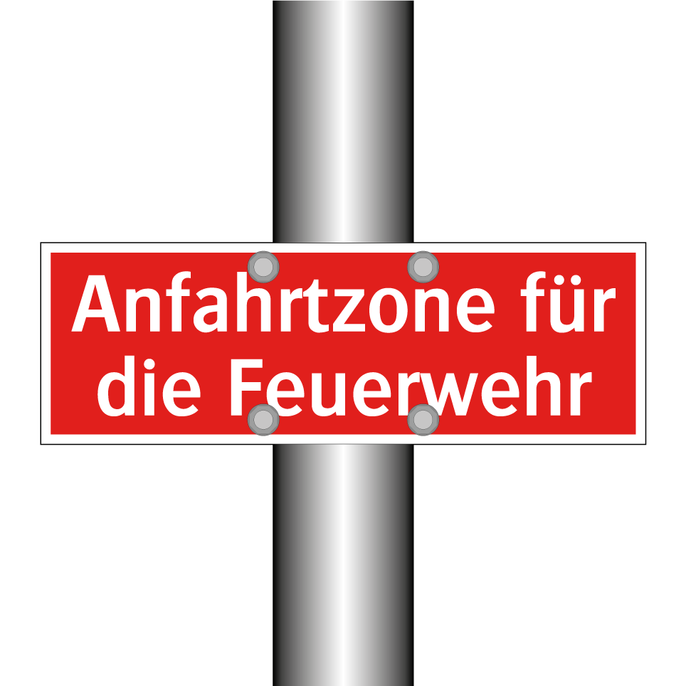 Brandschutzschild mit dem Text Anfahrtzone für die Feuerwehr