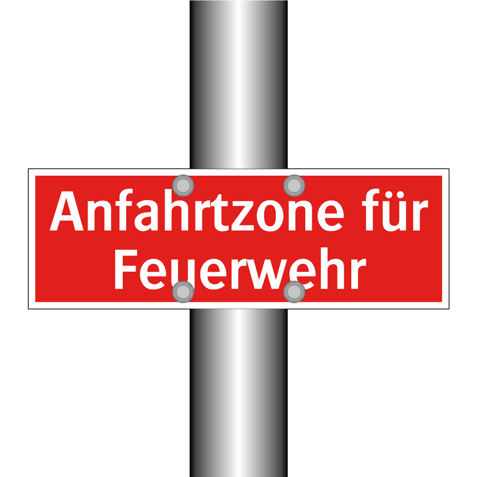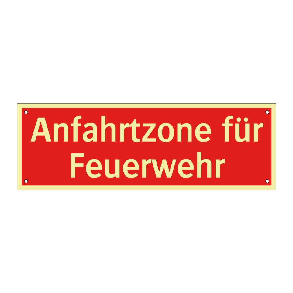 Brandschutzschild mit dem Text Anfahrtzone für Feuerwehr