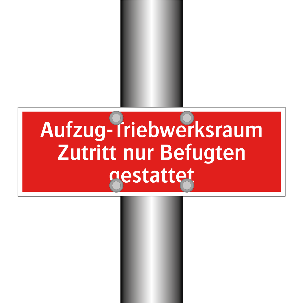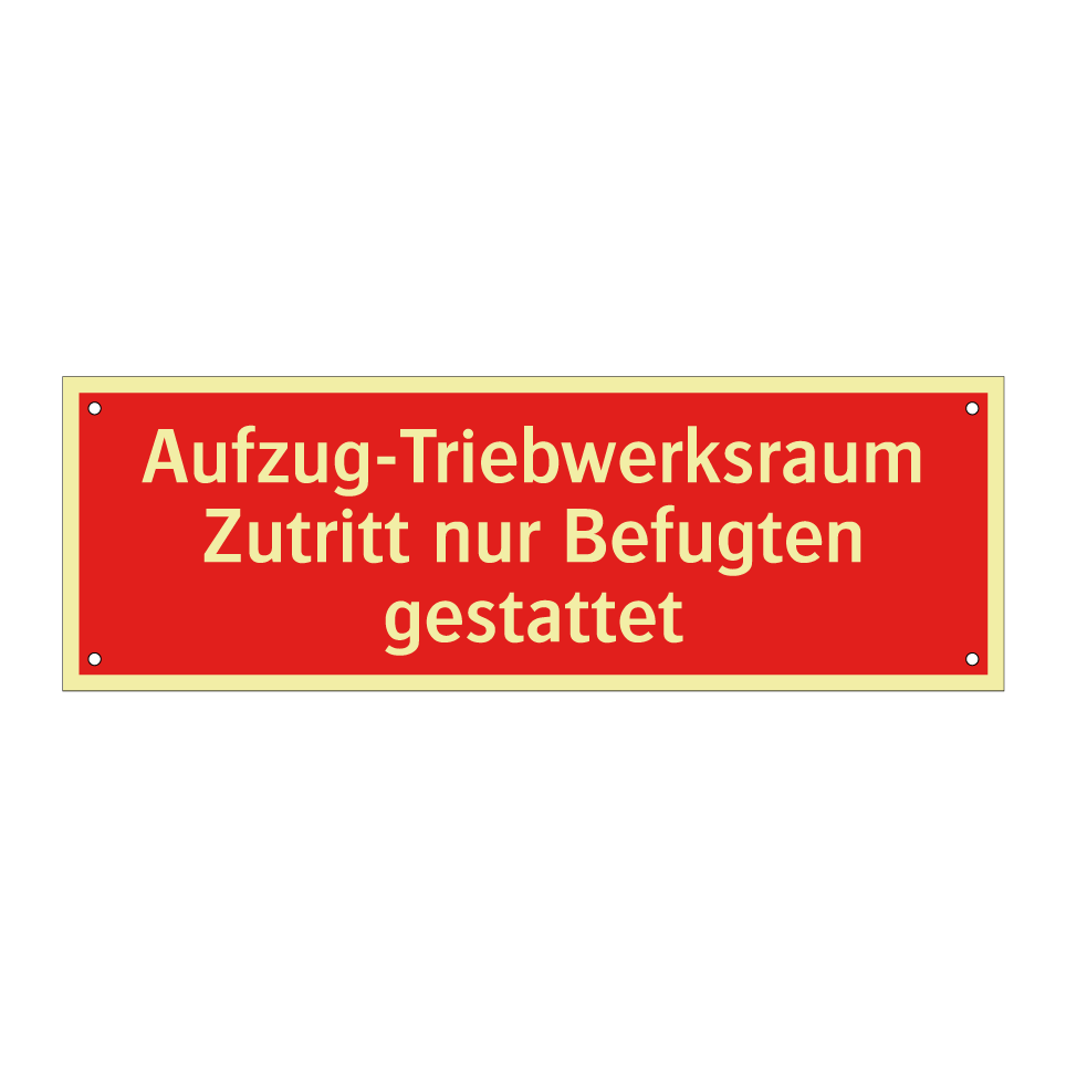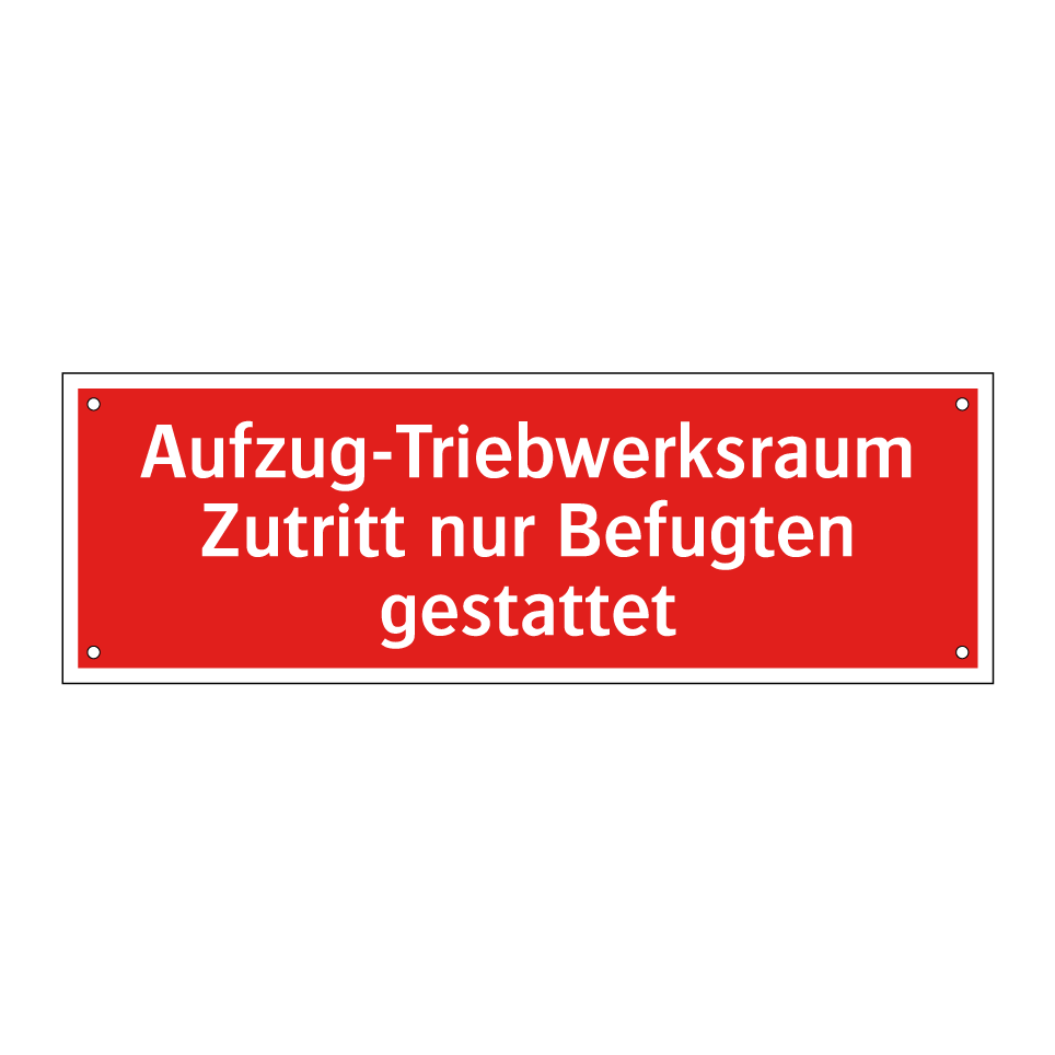 Brandschutzschild mit dem Text Aufzug-Triebwerksraum Zutritt nur Befugten gestattet