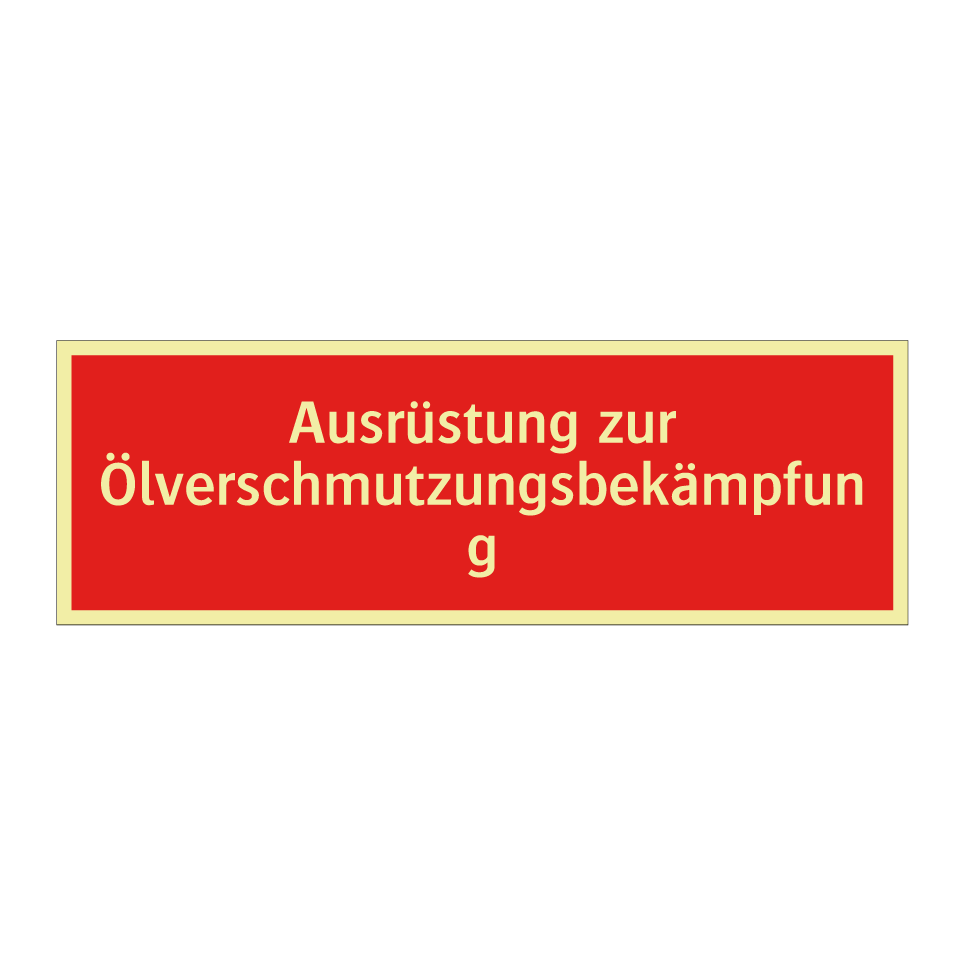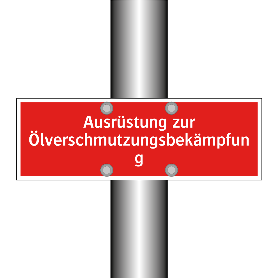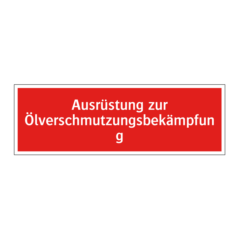 Brandschutzschild mit dem Text Ausrüstung zur Ölverschmutzungsbekämpfung