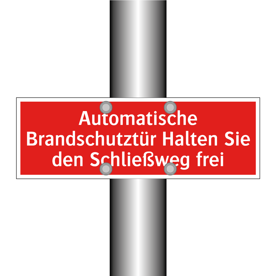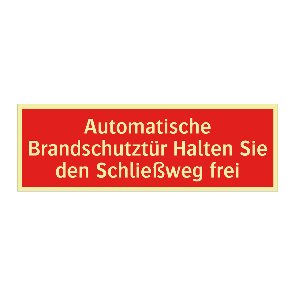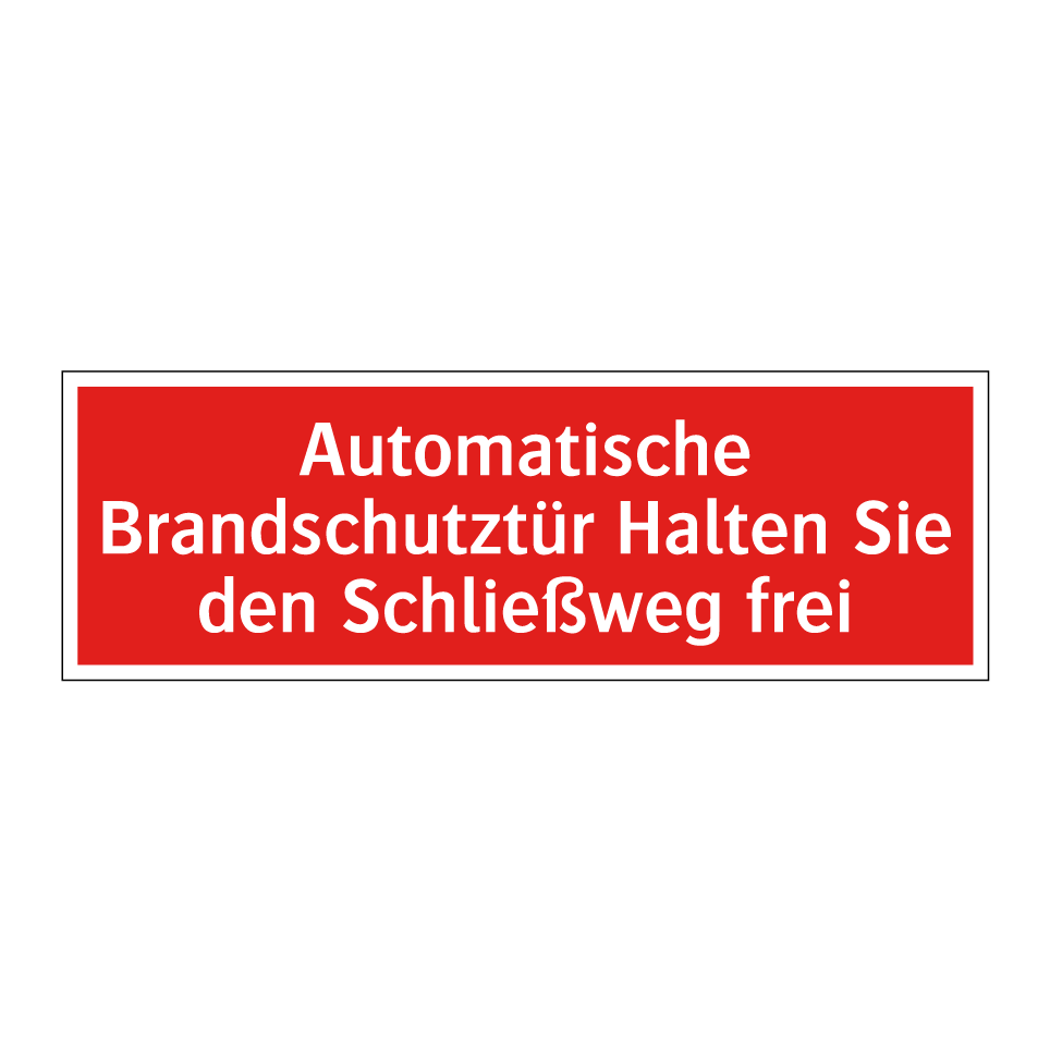 Brandschutzschild mit dem Text Automatische Brandschutztür Halten Sie den Schließweg frei