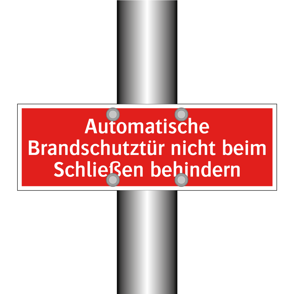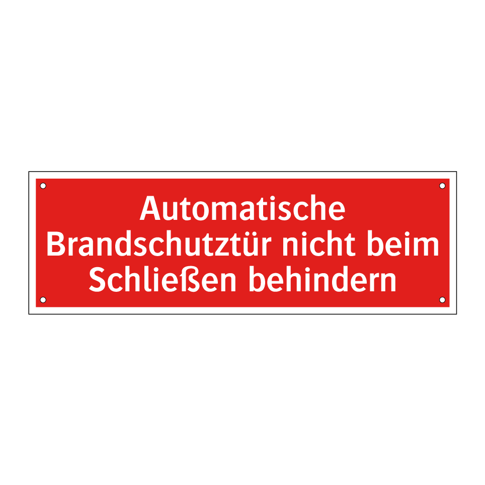 Brandschutzschild mit dem Text Automatische Brandschutztür nicht beim Schließen behindern