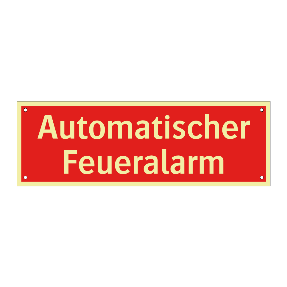 Brandschutzschild mit dem Text Automatischer Feueralarm
