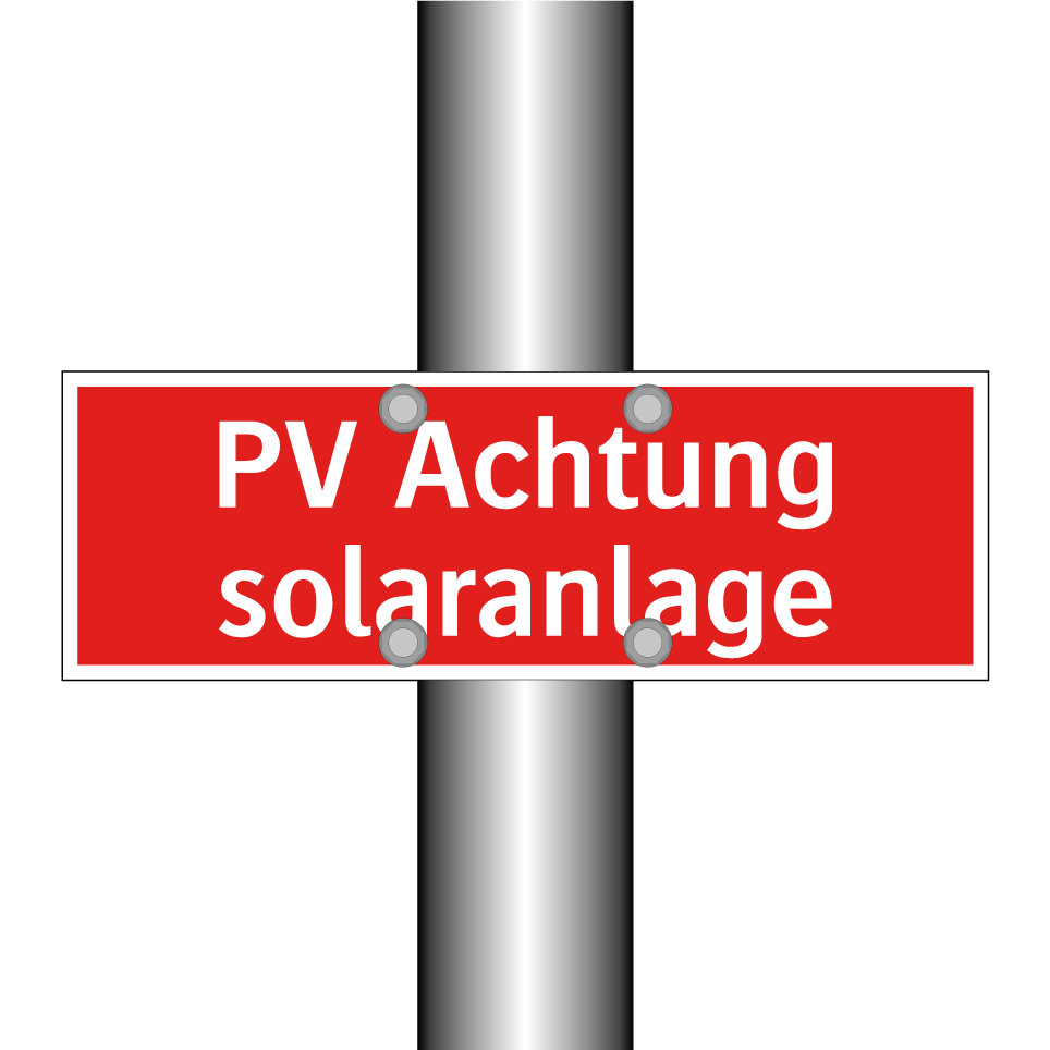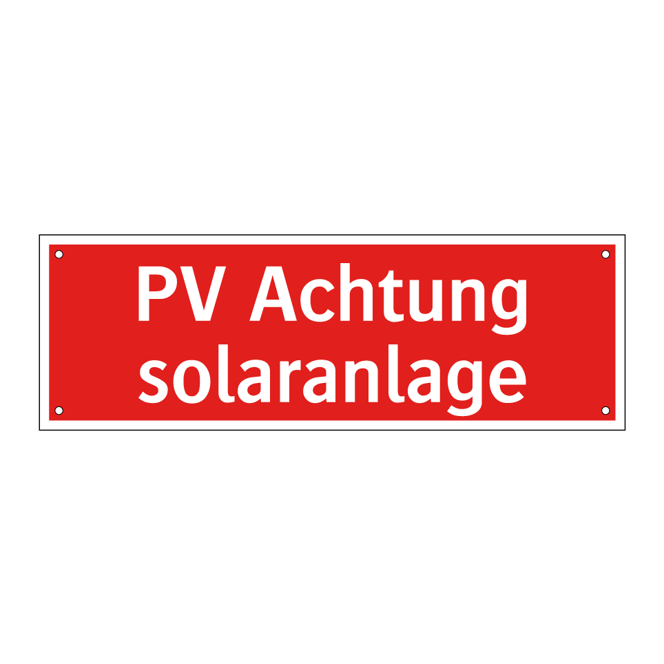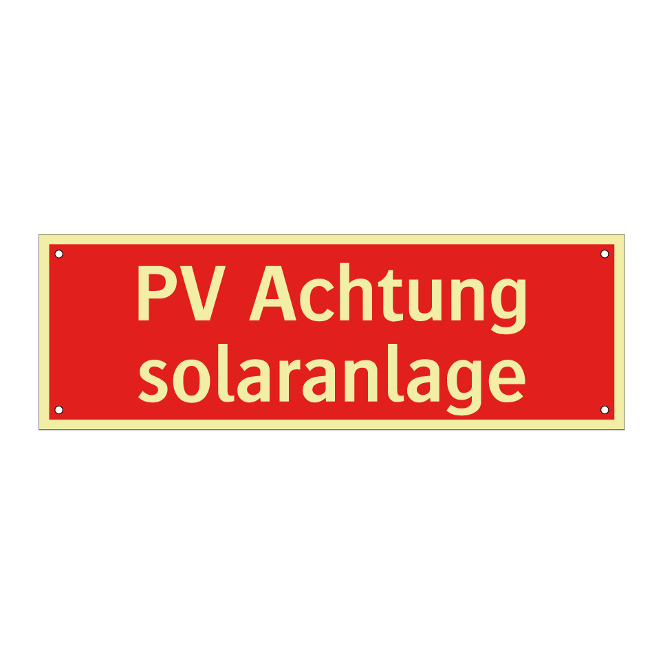 Brandschutzschild mit dem Text PV Achtung solaranlage