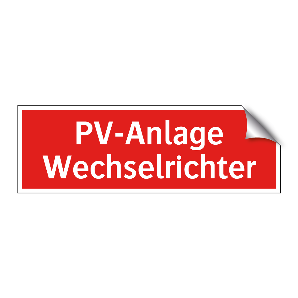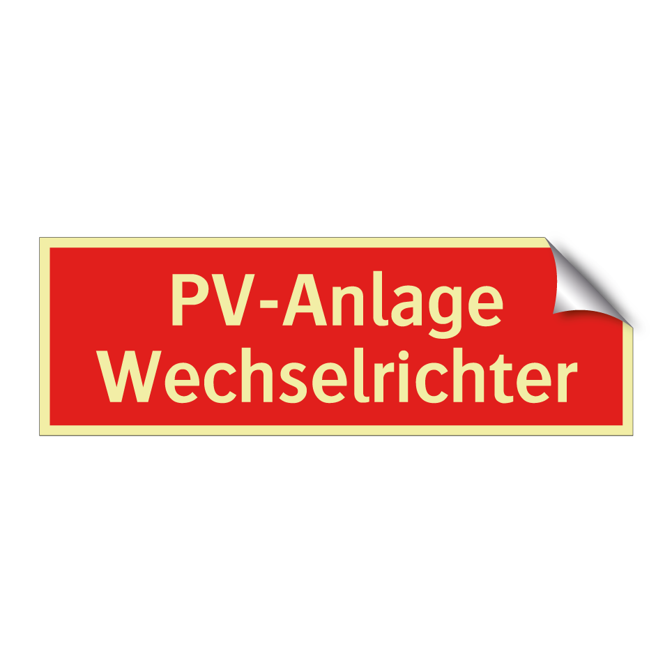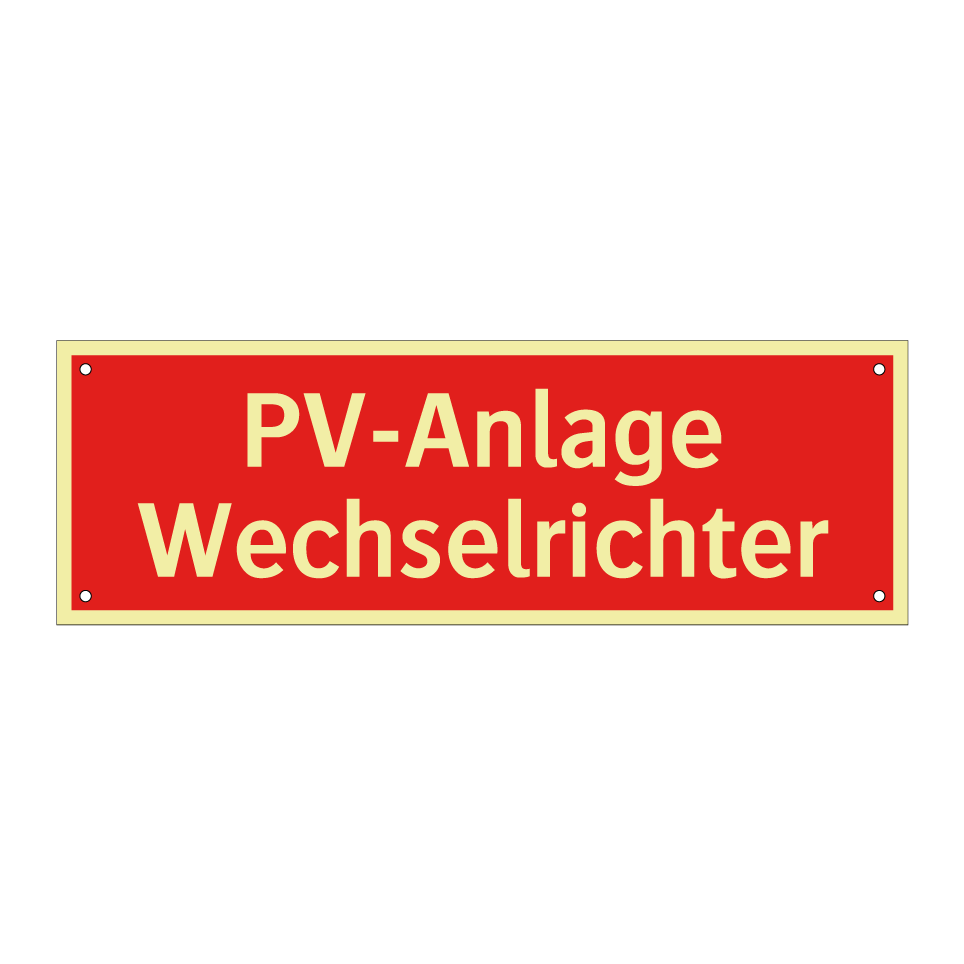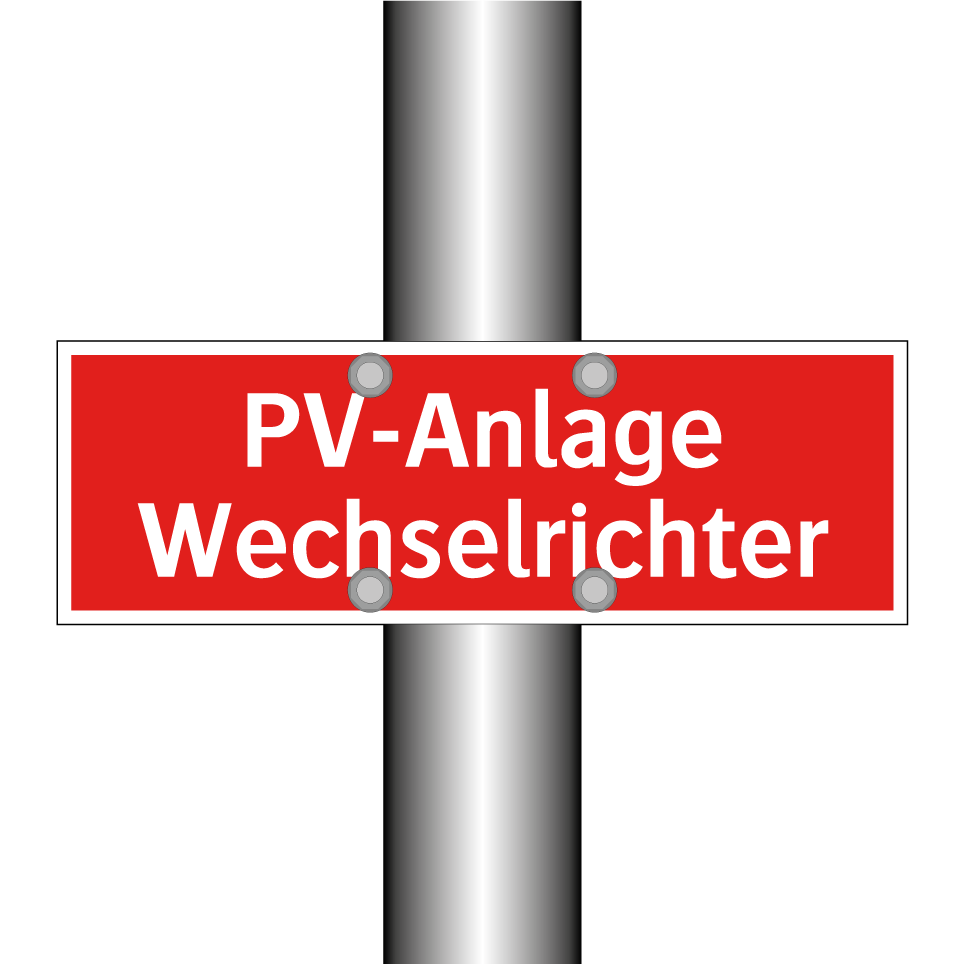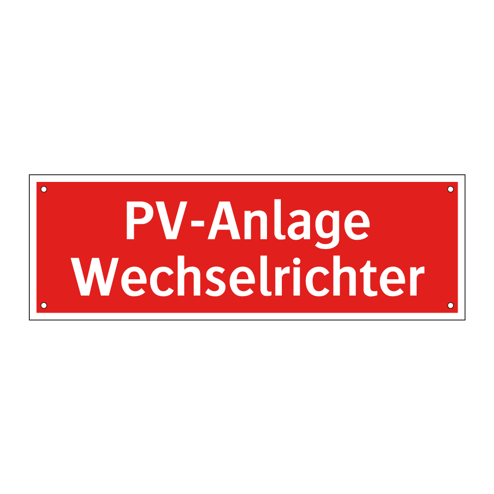 Brandschutzschild mit dem Text PV-Anlage Wechselrichter