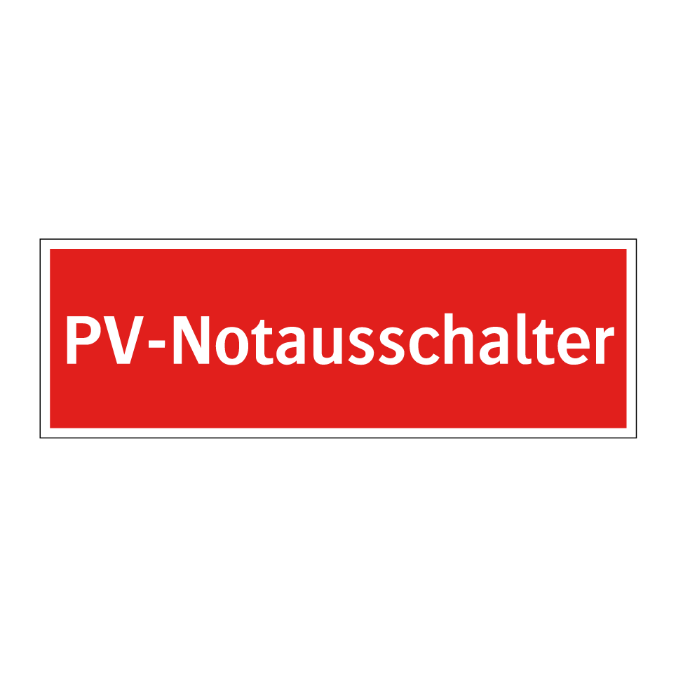 Brandschutzschild mit dem Text PV-Notausschalter