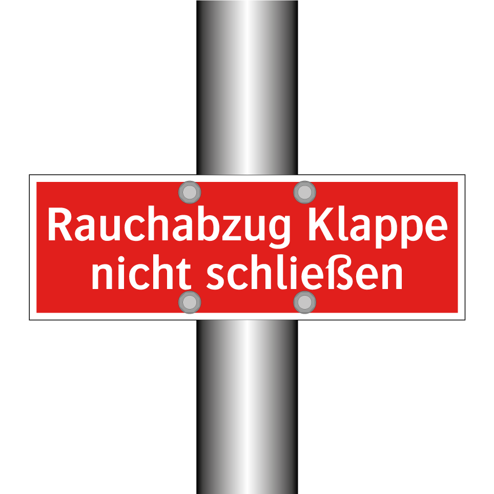 Brandschutzschild mit dem Text Rauchabzug Klappe nicht schließen